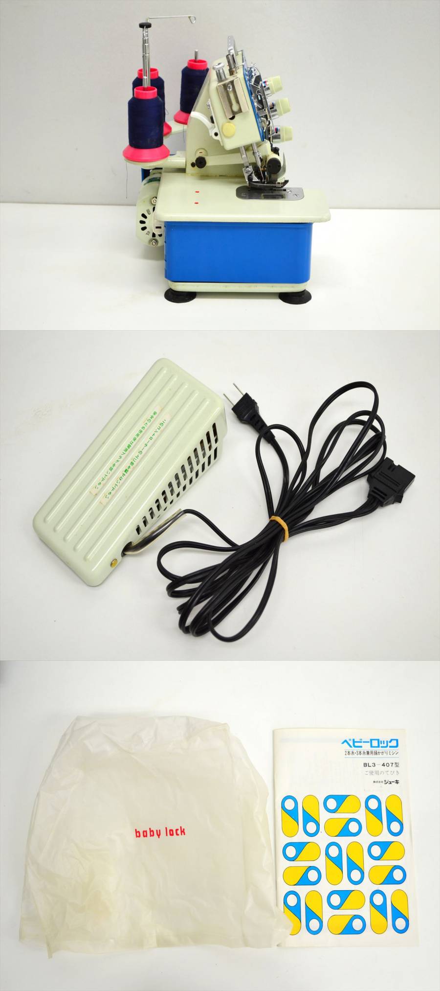 KM705●現状品●JUKI ジューキ baby lock ロックミシン BL3-407 フットコントローラー・取説付き 通電確認のみ 收藏