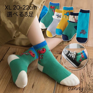 1330XL 恐竜柄 キョウリュウ 子供靴下 選べる3足組 20-22cm 收藏