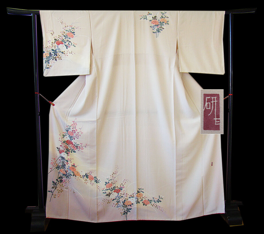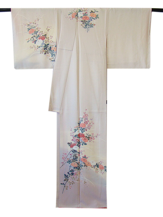 商品説明 | こちらのお品は「袷」ですので10月から5月までお召頂ければと思います。 とてもしなやかで柔らかな手触りの着心地良い重めの上質な極上一越地の生地、 淡い灰桜色地に裾にかけて淡い白藤色ぼかしに花草柄の本加工染、 気品に満ち溢れた彩りが正統派のお着物として一枚は欲しい逸品の素敵なお着物です。 八掛は珊瑚色(正絹)、作家の落款入り、幅広い年代の方にお召頂けます。 |