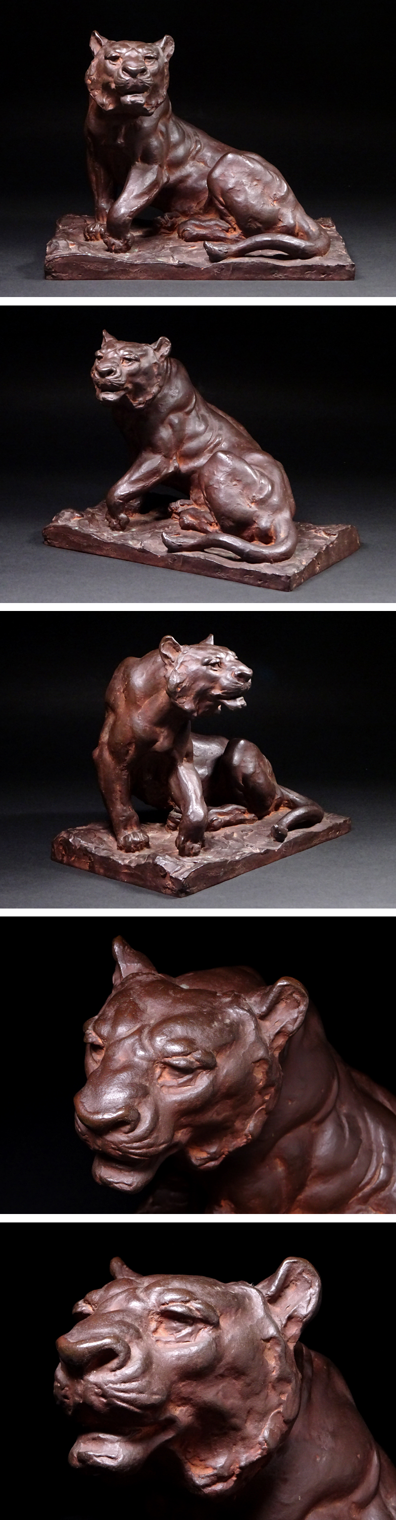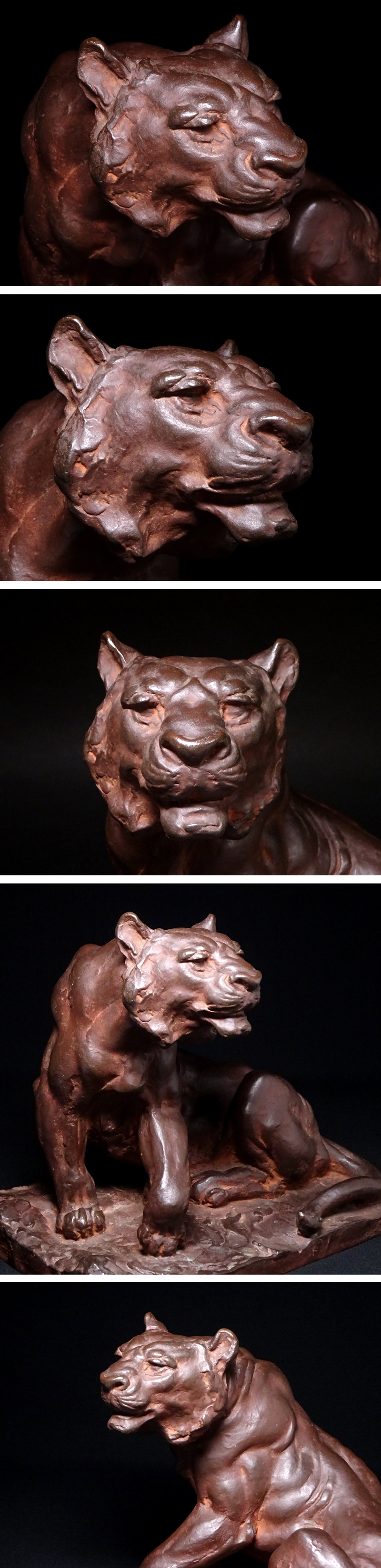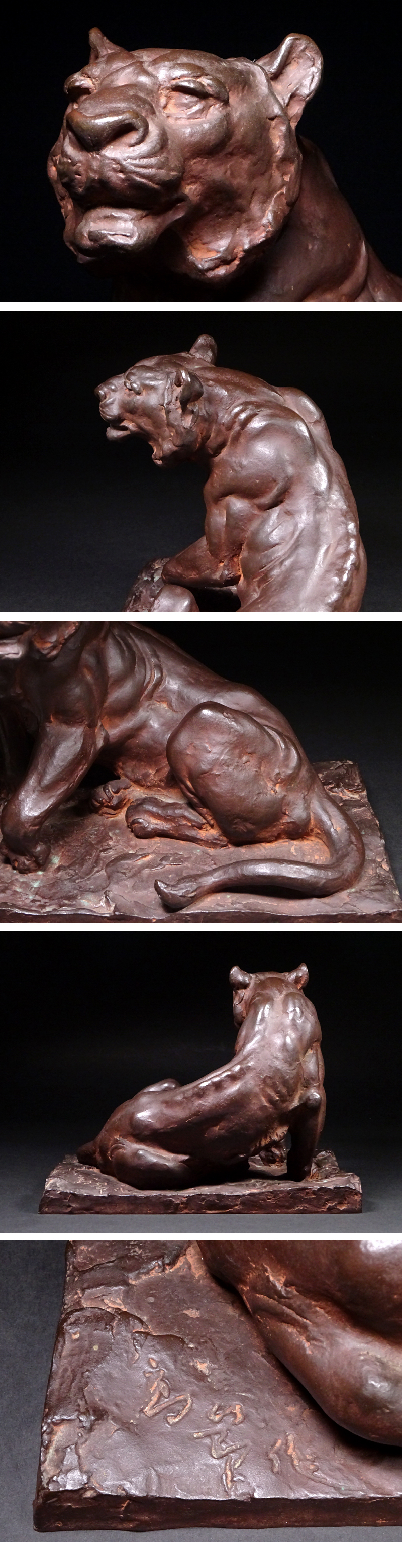 慶應◆朝倉文夫門下【小野田高節】作 ブロンズ像 動物彫刻『猛虎』共箱付 收藏