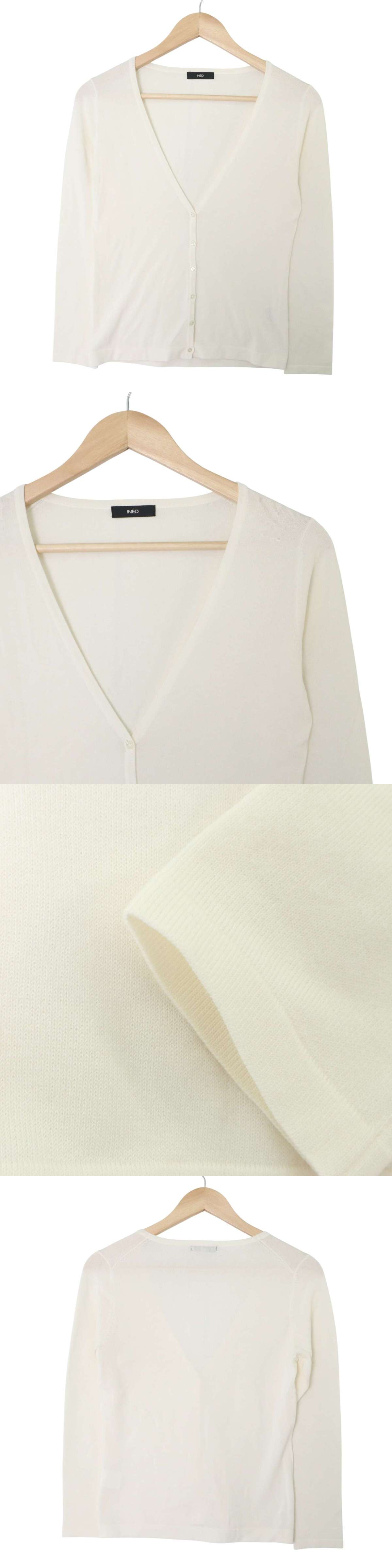 INED イネド 秋冬★ Vネック ニット カーディガン Sz.9 レディース 白 收藏
