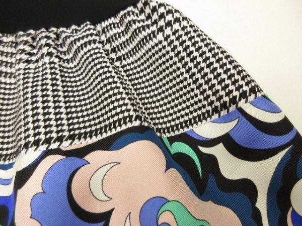 素材違いの千鳥格子柄の切替がポイントになっているワンピース