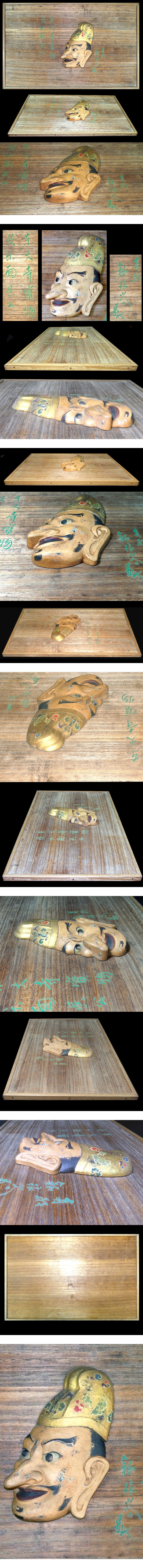 【和】■細密立体彫刻【彩色木彫 東大寺伎 楽酔胡王面 木板/市川銕琅作】作家 在銘 壁掛 額装 骨董品 古美術品 横60cm×縦40.3cm■ 收藏