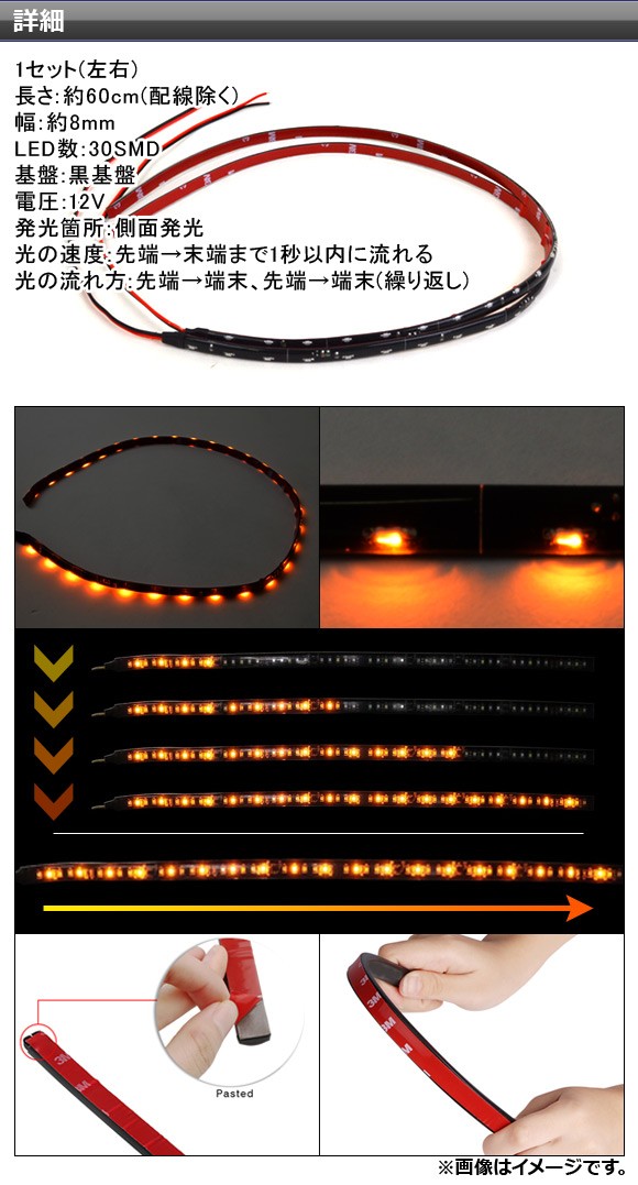 AP 流れるウインカー LEDテープ 60cm 黒基盤 SMD 30連 側面発光 AP-LL114 入数:1セット(左右) 收藏
