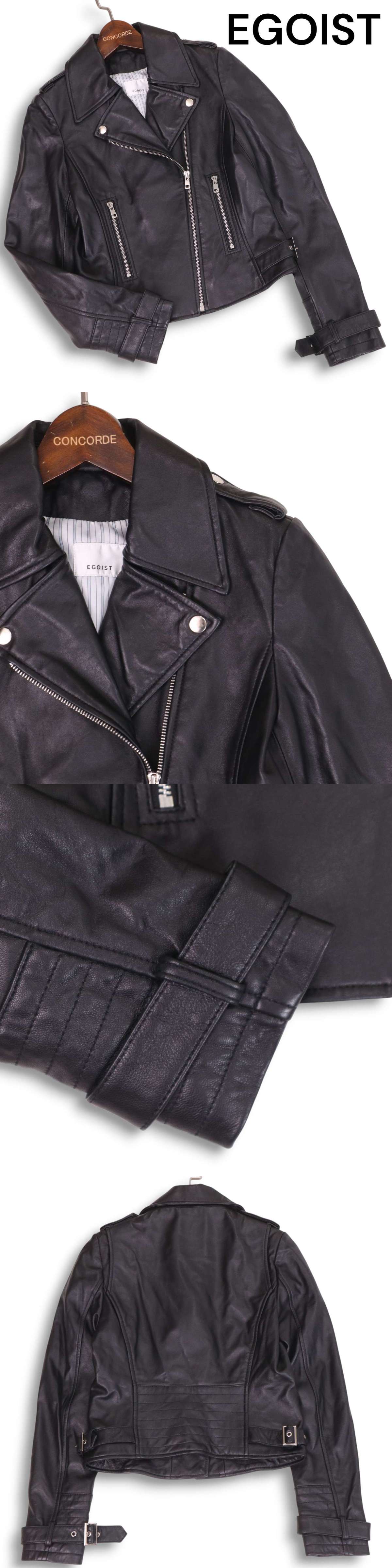 【美品】EGOIST エゴイスト 秋冬★ 羊革 リアル ラム レザー ダブル ライダース ジャケット Sz.1 レディース 黒 定価4.6万円 收藏