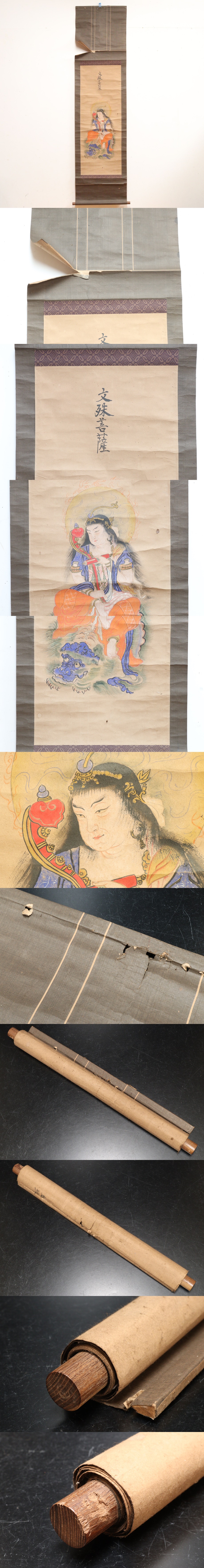 P 紙本 肉筆 仏画 文殊菩薩 掛軸 收藏