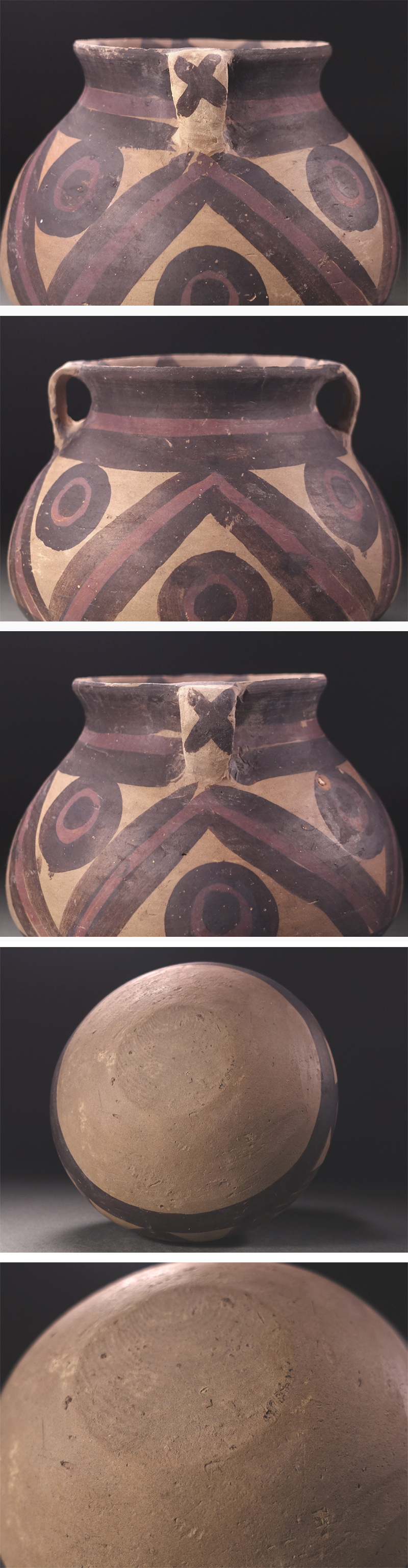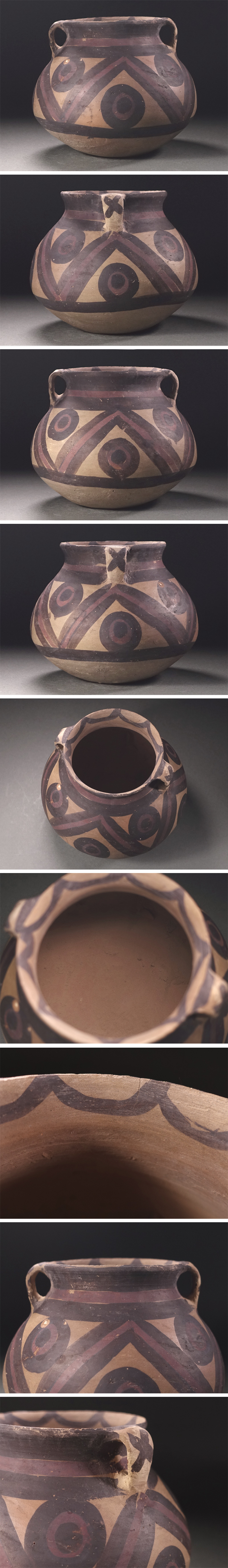 ∇花∇紀元前2300~2000年頃先史時代 仰韶文化遺物 馬家窯文化馬廠期 アンダーソン彩文土器 彩陶土器 赤黒彩幾何文双耳壷 B 收藏