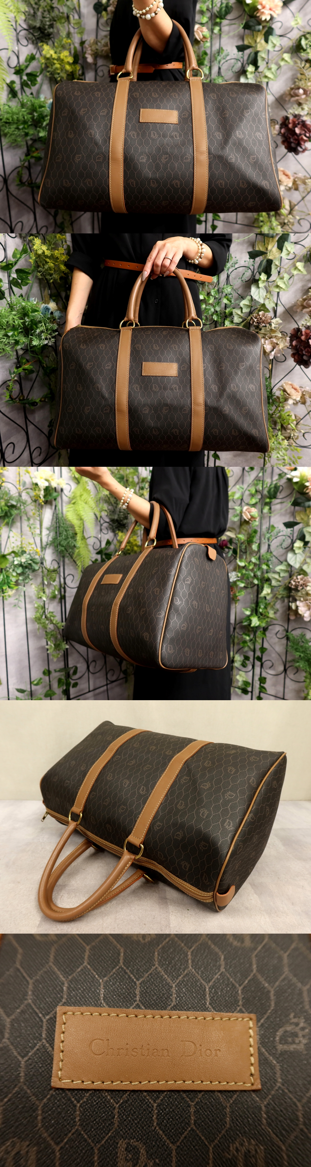 ●超美品●クリスチャン・ディオール●ハニカム柄●PVC カーフ レザー 本革●ボストン バッグ●ブラウン系●G金具●ヴィンテージ●Js61272 收藏