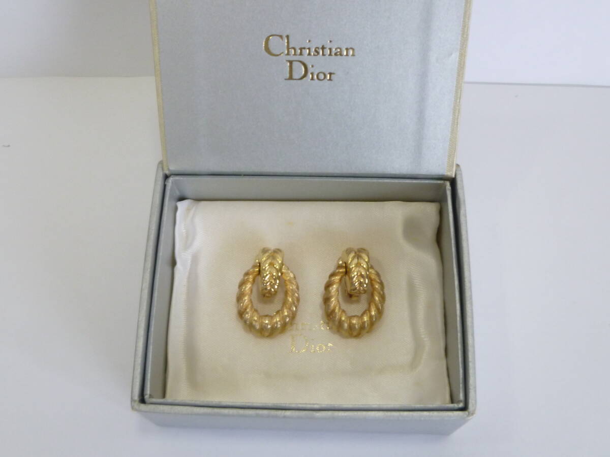 72157◆アクセサリー Christian Dior/クリスチャンディオール イヤリング フープ ロープ ゴールドカラー/金色 ケース有 装飾品◆ 收藏