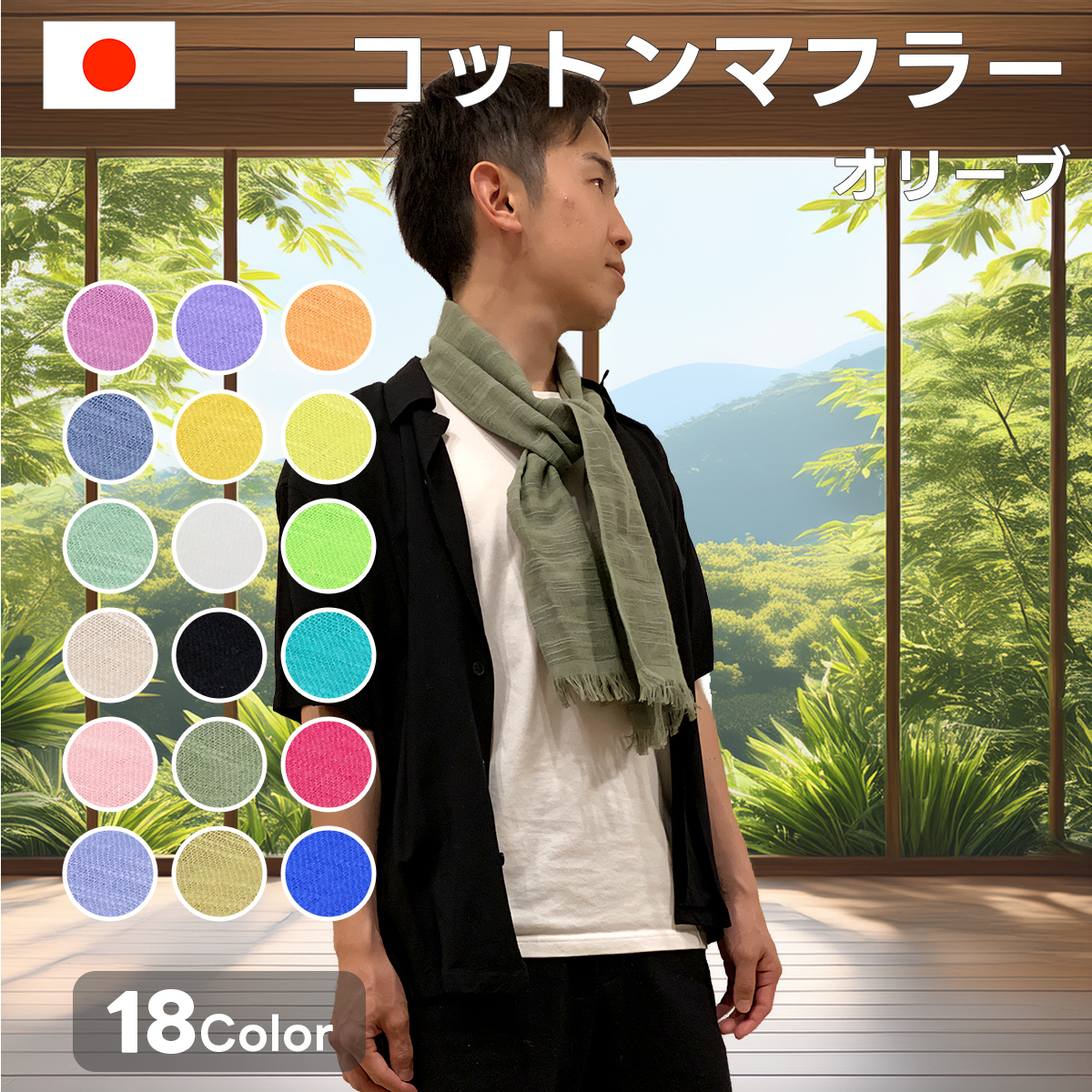 マフラー コットンマフラー オリーブ 日本製 無地 ストール タオルマフラー レディース メンズ 綿100% 年中 爽やか 收藏