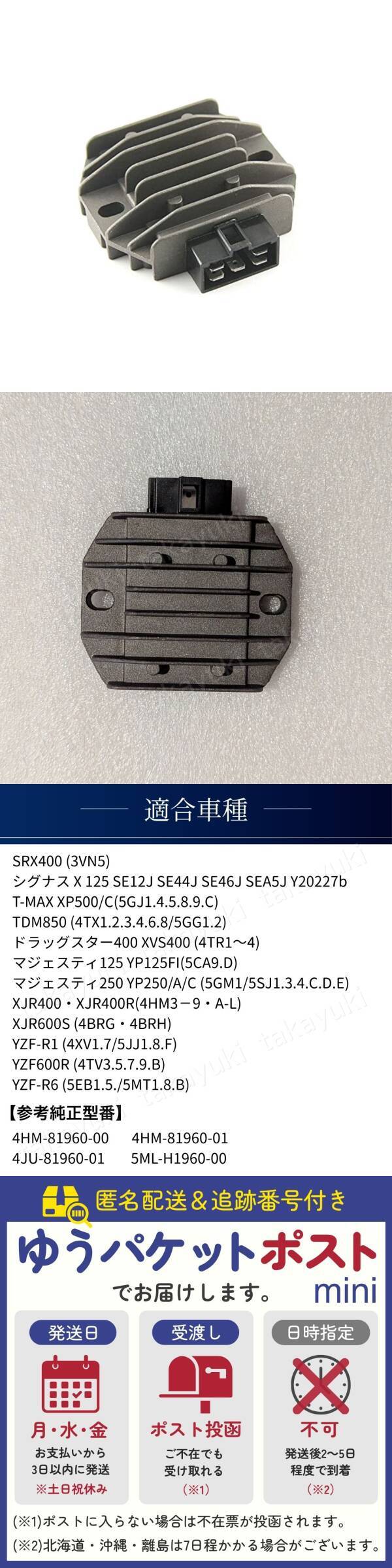 ヤマハ レギュレーター 互換 レギュレター 整流器 熱対策 バッテリー バイク シグナス マジェスティ ドラッグスター XJR400 SRX400 YZF 收藏