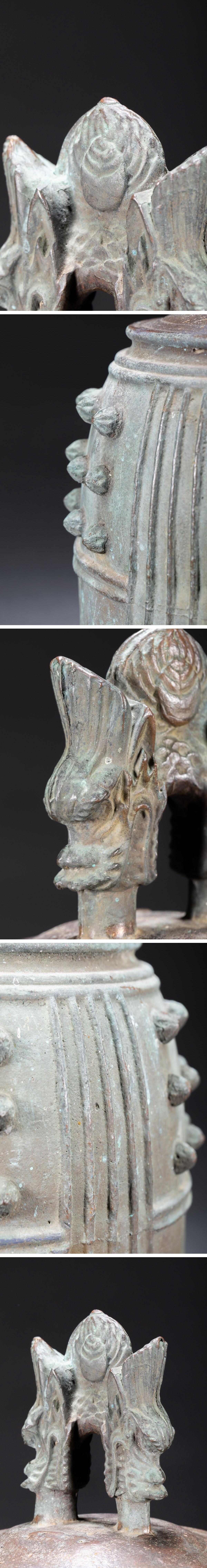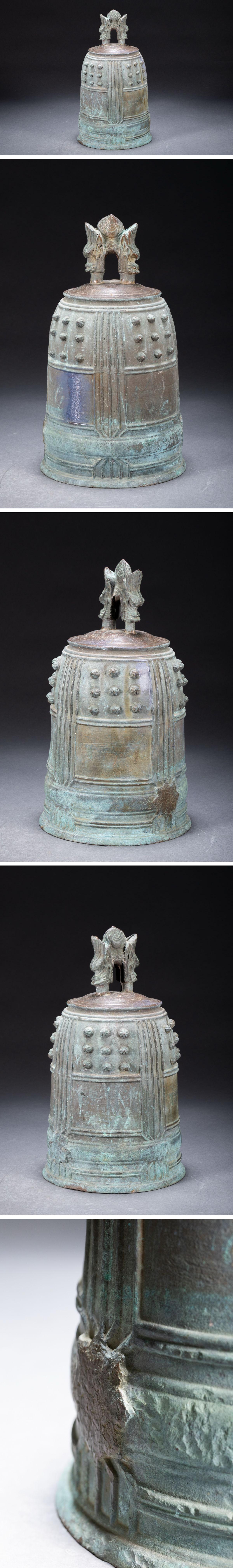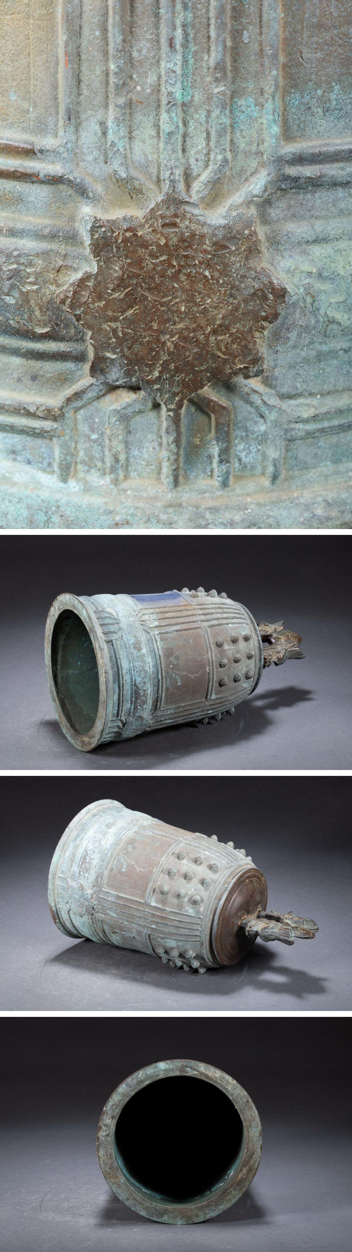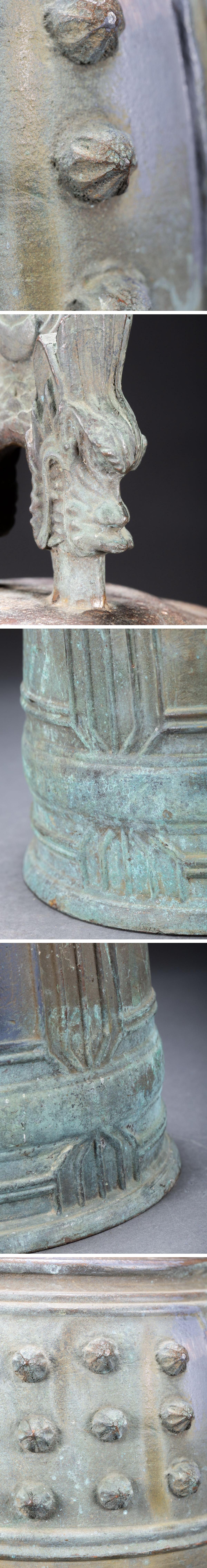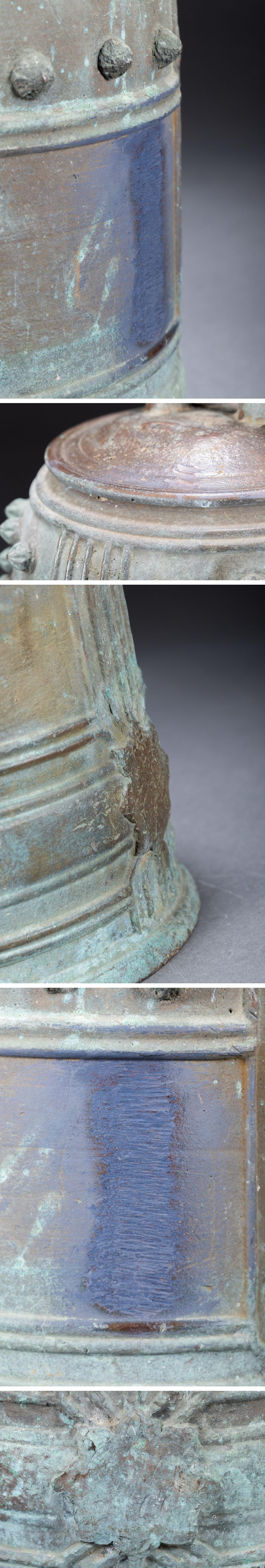 【清】時代物 重厚 古銅双龍頭釣鐘・銅釣鐘・銅佛鐘・銅梵鐘・銅吊鐘・銅半鐘・銅喚鐘 重量14.6kg時代物保証 骨董品7L8-6S4