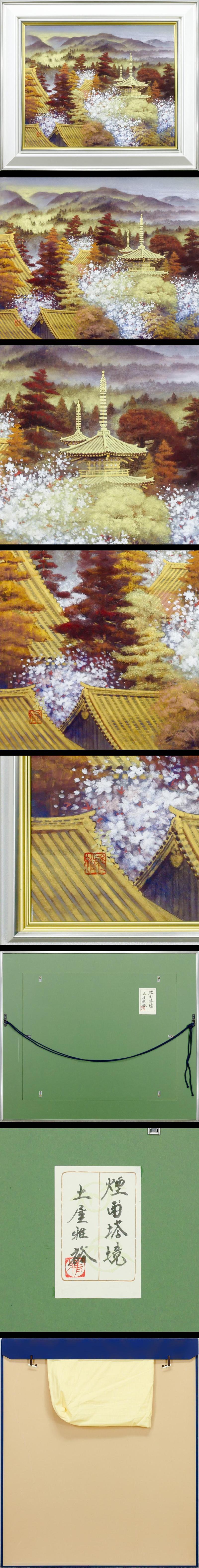【真作】【WISH】土屋雅裕「煙雨塔境」日本画 15号 大作 金落款 金泥 共シール ◆雅な金彩の塔と桜名画 〇古寺風景の名手 #25093185 收藏