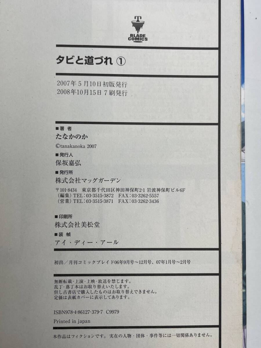 タビと道づれ1 ブレイドCたなかのか著者 平成20年 2008年発行初版