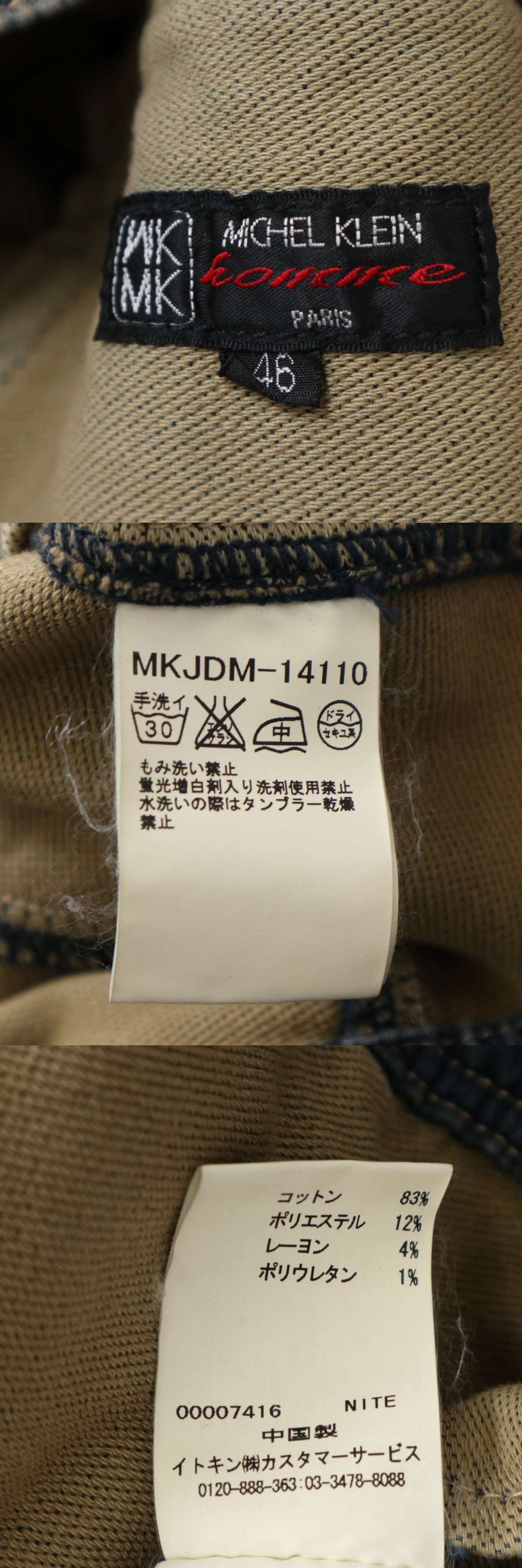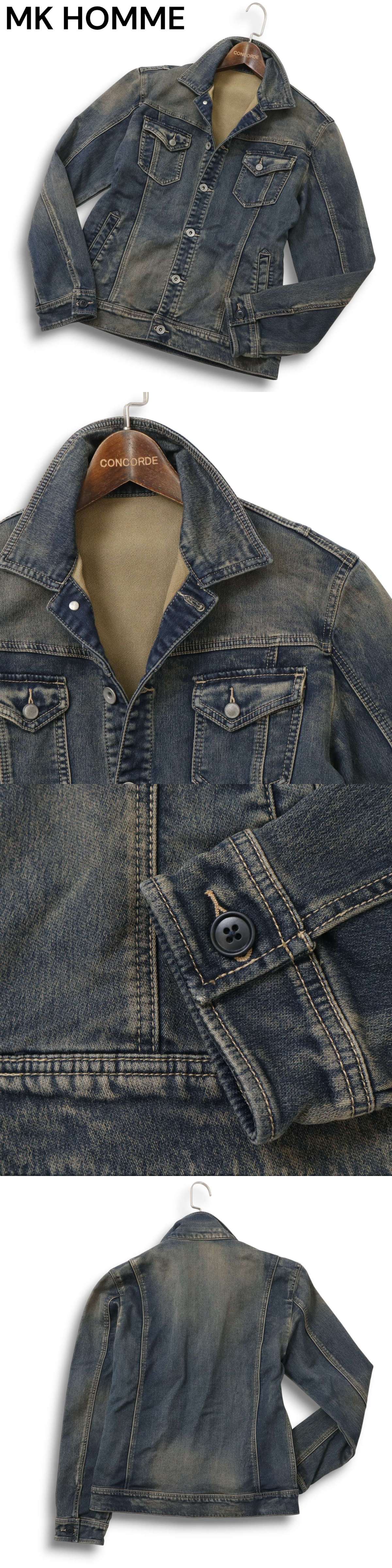 MK HOMME ミッシェルクラン オム USED加工★ スウェット デニム ジャケット Gジャン Sz.46 メンズ 收藏