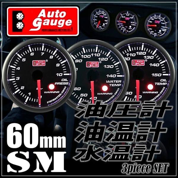 オートゲージ 水温計 油温計 油圧計 60Φ SM 3点セット スイス製モーター スモークレンズ ワーニング オープニングセレモニー 收藏