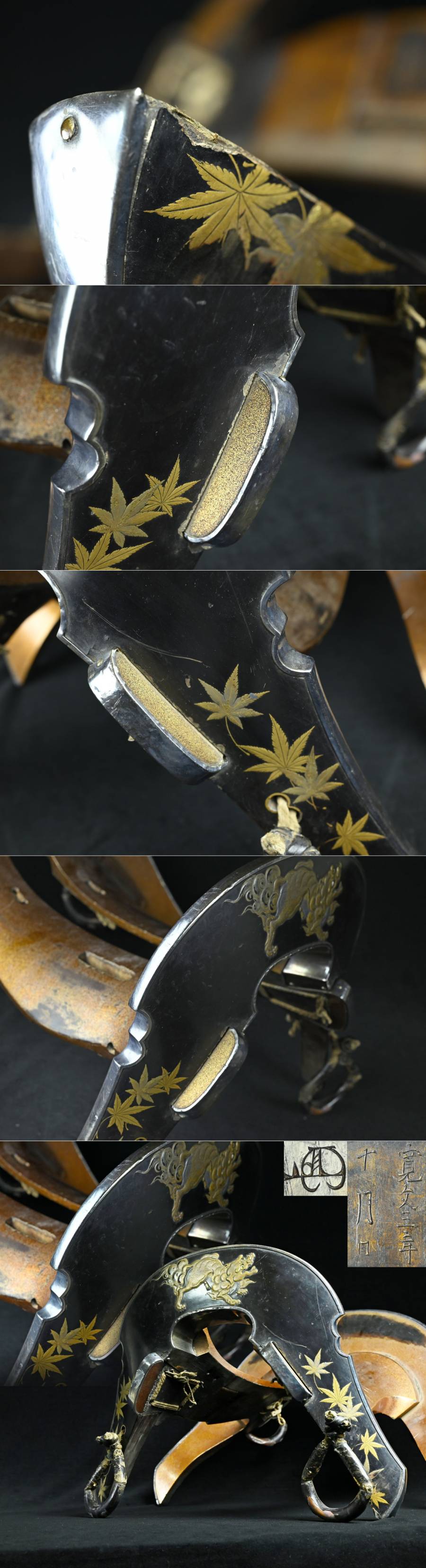 【昊】江戸期 寛文三年十月日 花押 銀覆輪 光琳蒔絵獅子紅葉図 梨地銀巻馬鞍 野馬追 相馬 古式馬具 鎧甲冑 武具[LJ65oYs] 收藏
