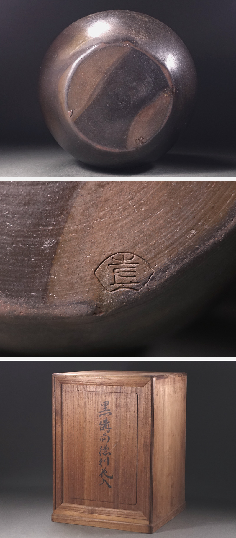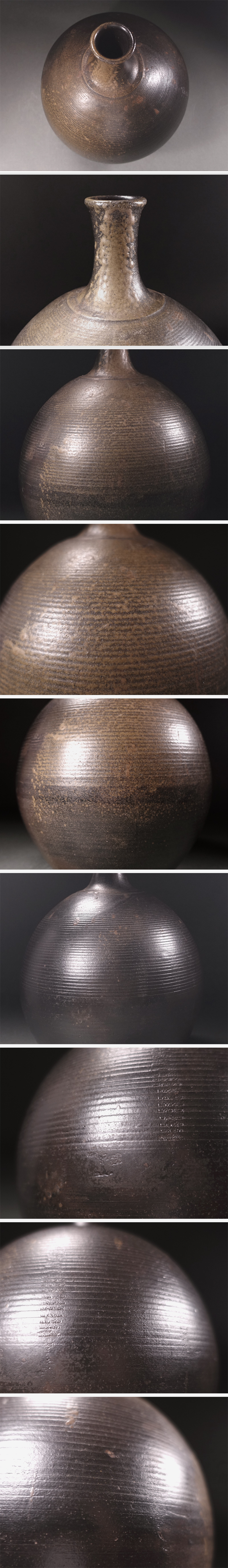 ∇花∇江戸時代後期~明治期頃 黒備前 伊部手徳利花入 伊部らしい薄手黒褐色の素晴らしい姿 窯印あり 收藏