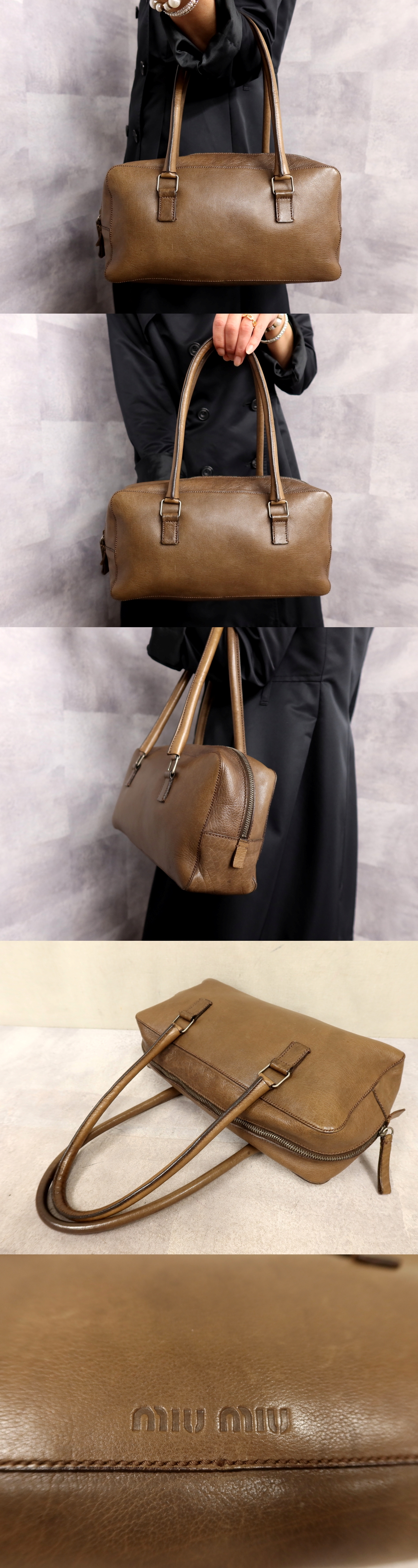 ●美品●miu miu ミュウミュウ●アーカイブ●ロゴ型押し●カーフ レザー 本革●ミニ ボストン ハンド バッグ●ブラウン●腕掛け●Js62229 收藏