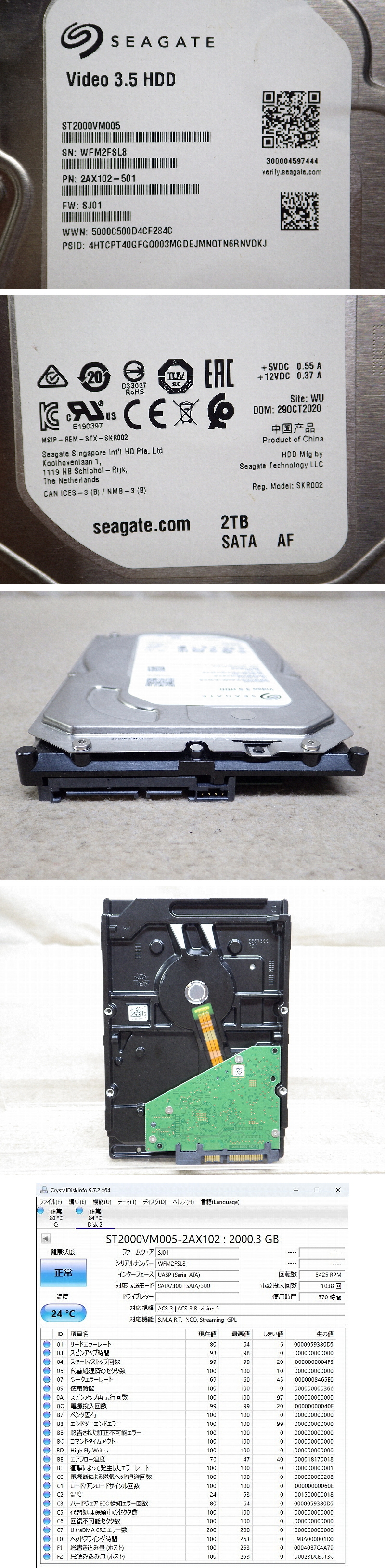 Kネま2125 SEAGATE SATA 3.5インチ 内蔵HDD 2TB ST2000VM005-2AX102 パソコン周辺機器 PCパーツ ハードディスク 收藏
