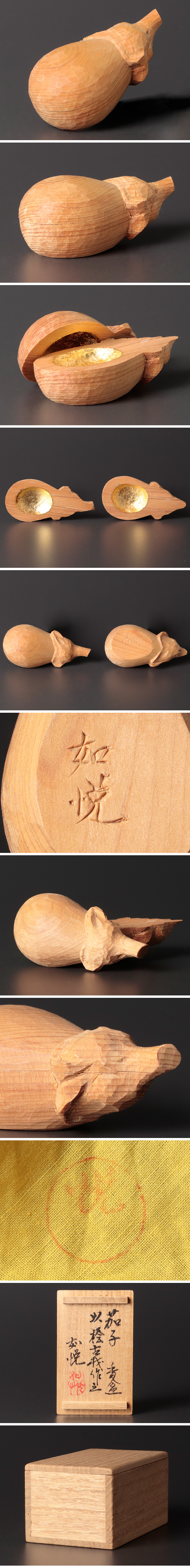 | 【古美味】山崎如悦 以桧古材作之 茄子香合 茶道具 保証品 |