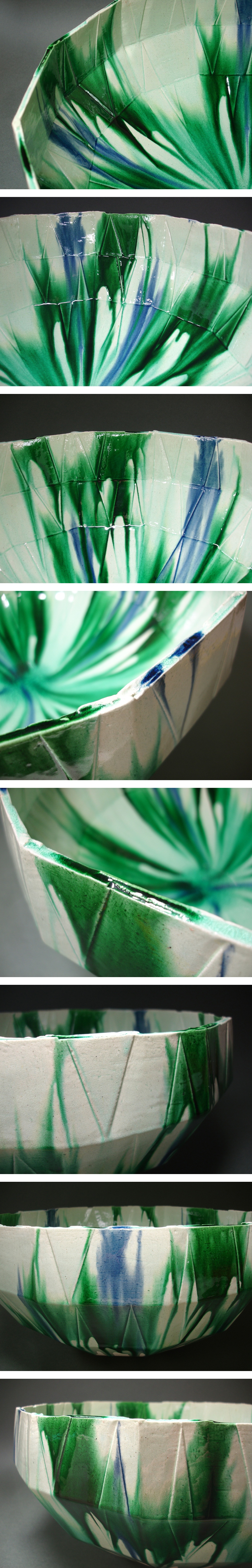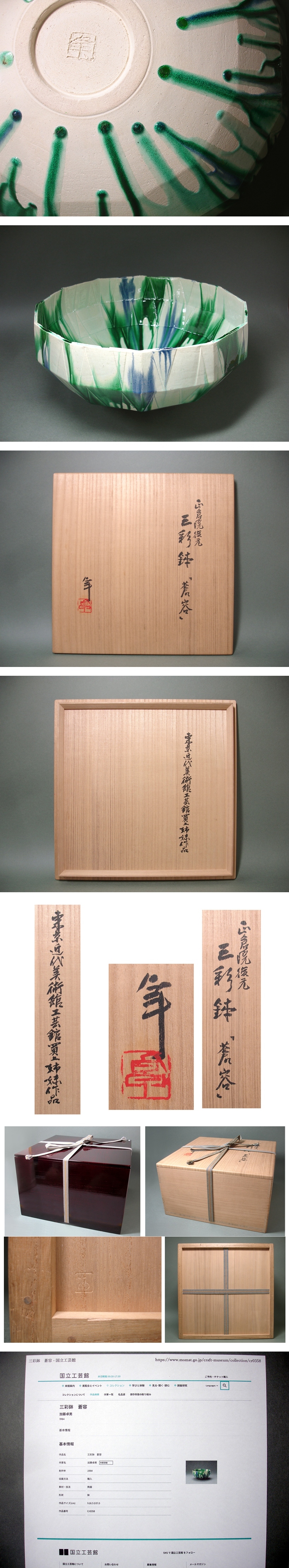 慶應◆人間国宝【加藤卓男】秀逸作 東京近代美術館工芸館買上姉妹作品 正倉院復元 三彩鉢『蒼容』 共箱・二重箱付 直径36.5cmの大作! 收藏