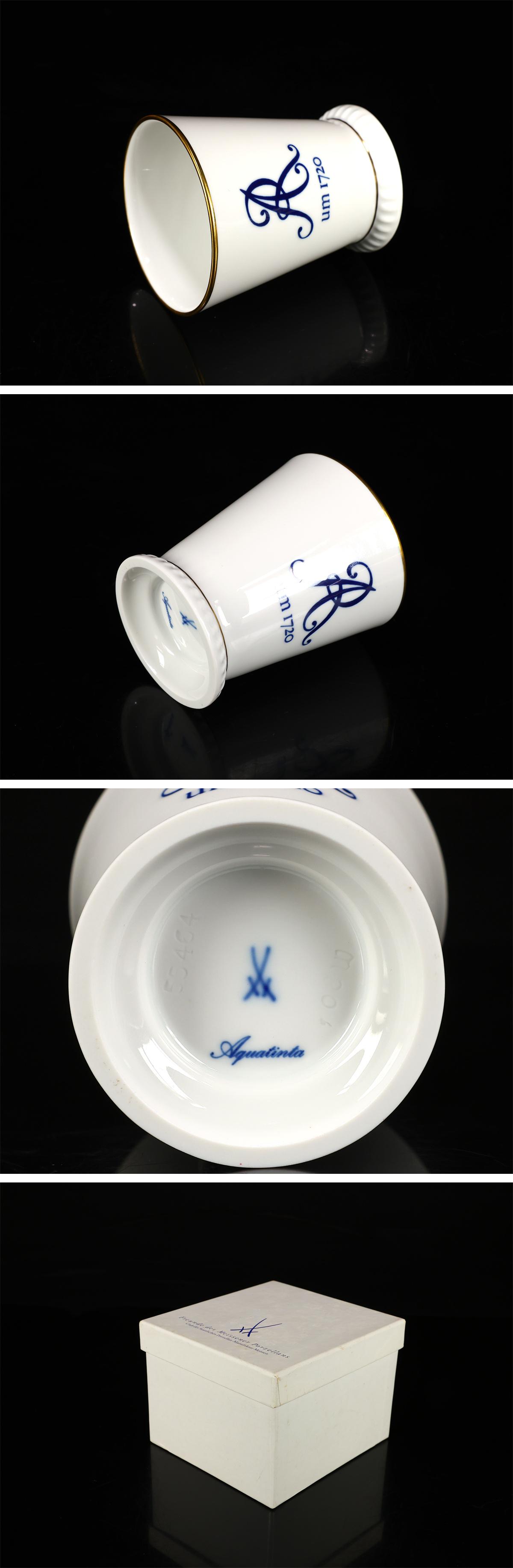 【吉】CN949 MEISSEN 【マイセン】 ブルー1720マーク グラス 高8.2㎝ 径7㎝/共箱付 美品! 收藏