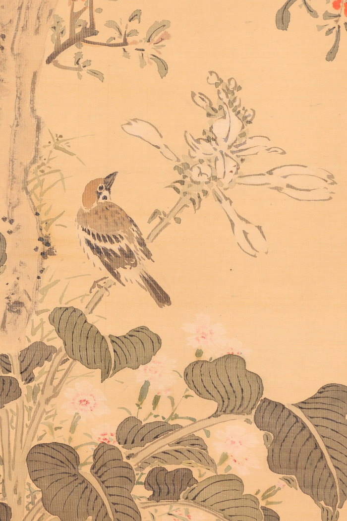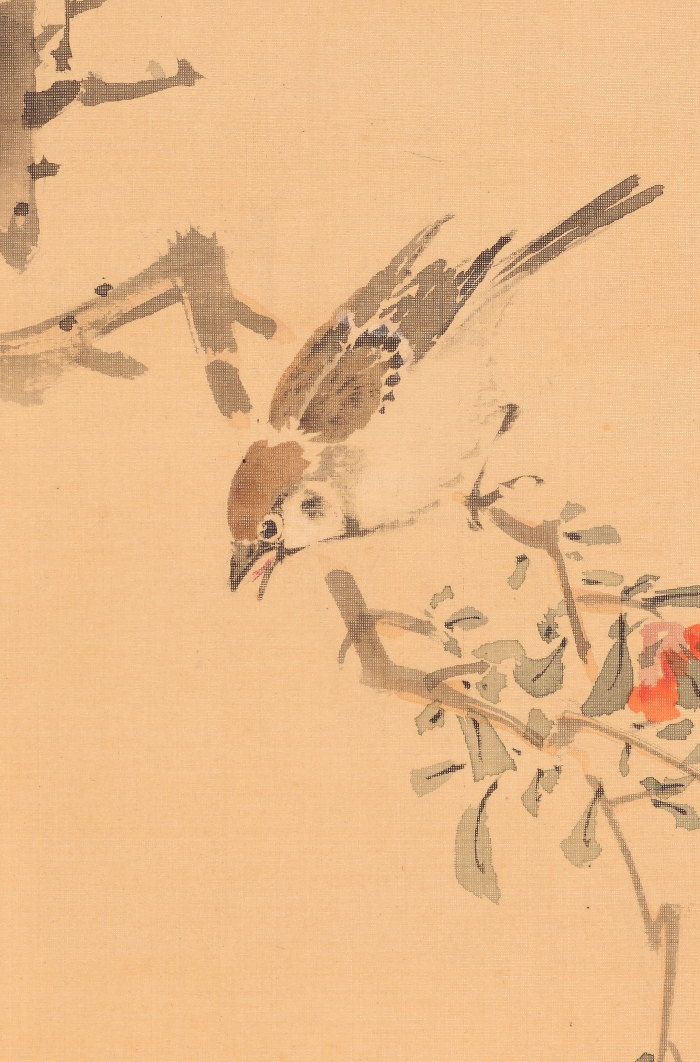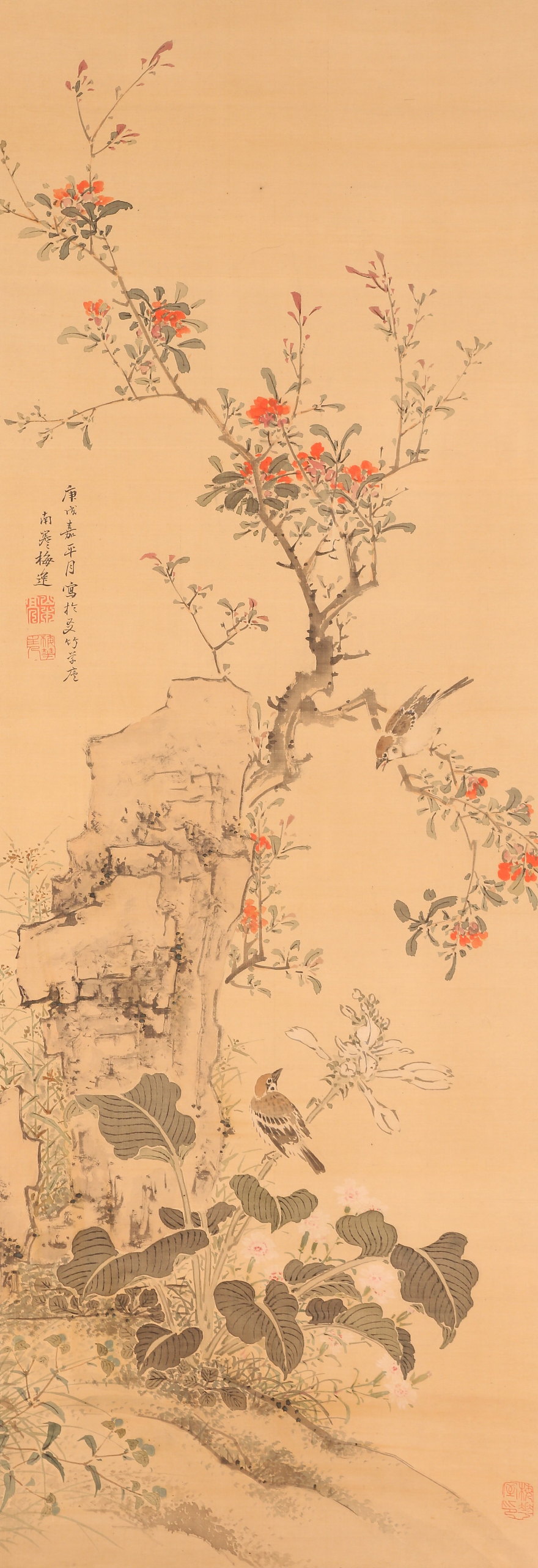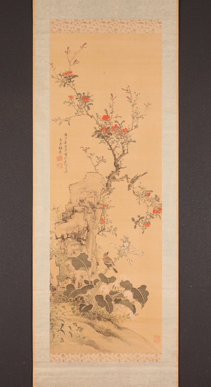 【模写】【伝来】am8162〈山本梅逸〉花鳥図 雀 山本蘭亭師事 江戸時代後期 南画家 愛知の人 收藏
