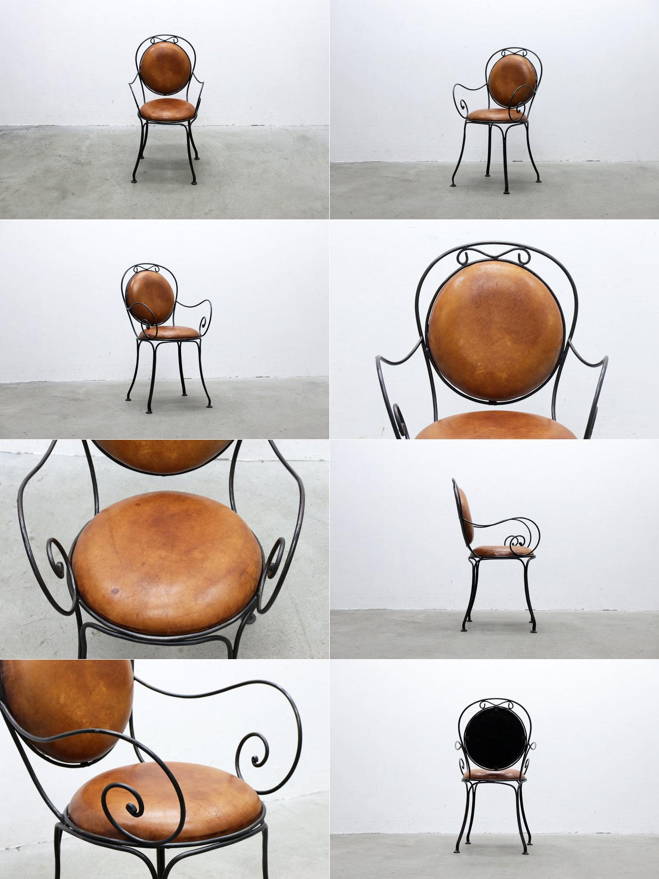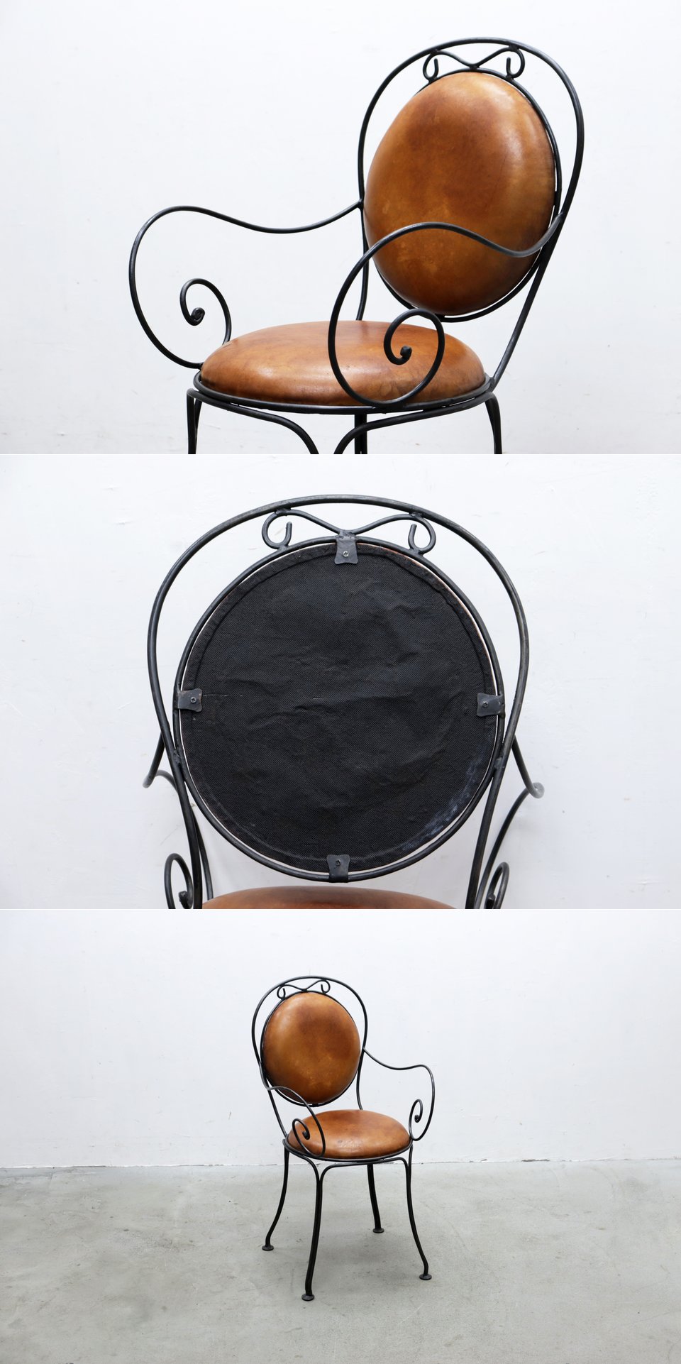 ◆アイアン レザー クラシカル アームチェア ダイニングチェア サイドチェア 椅子/ヴィンテージアンティーク英国仏カフェサロン/PKT25174◆ 收藏