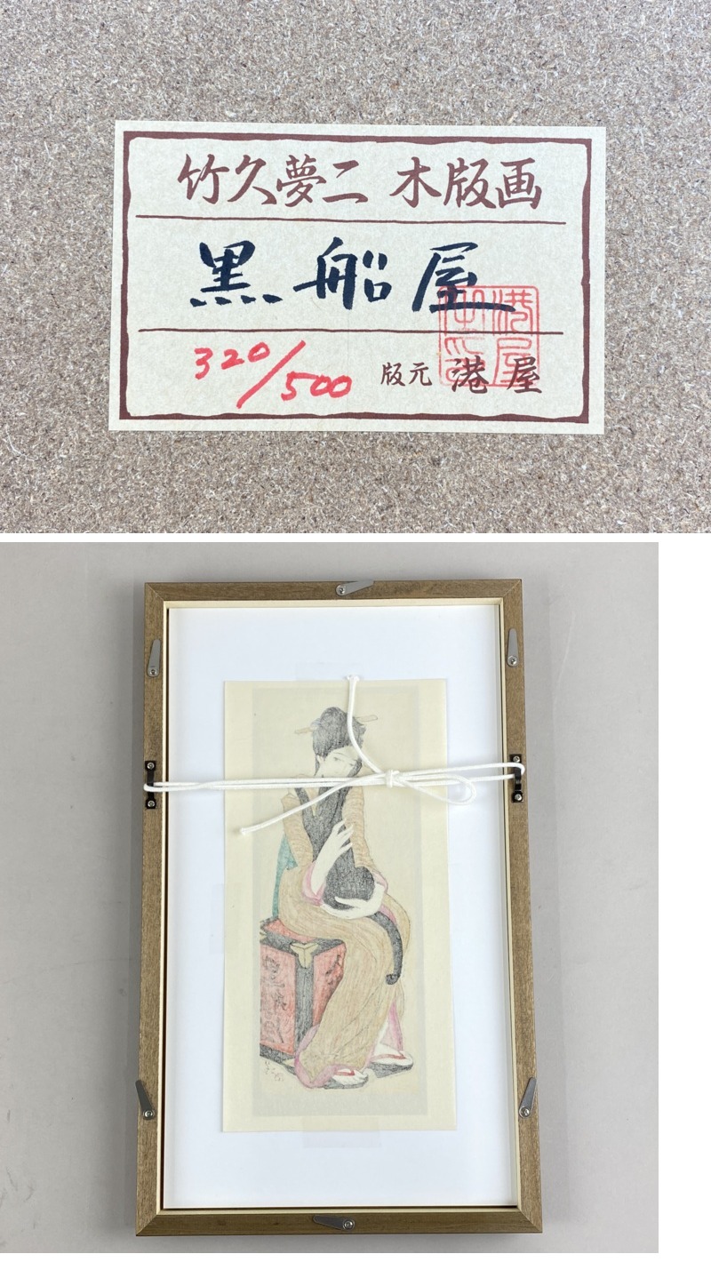 i1976 真作 竹久夢二 木版画 黒船屋 320/500 大正ロマン 港屋版 美人画 人物画 額装 收藏