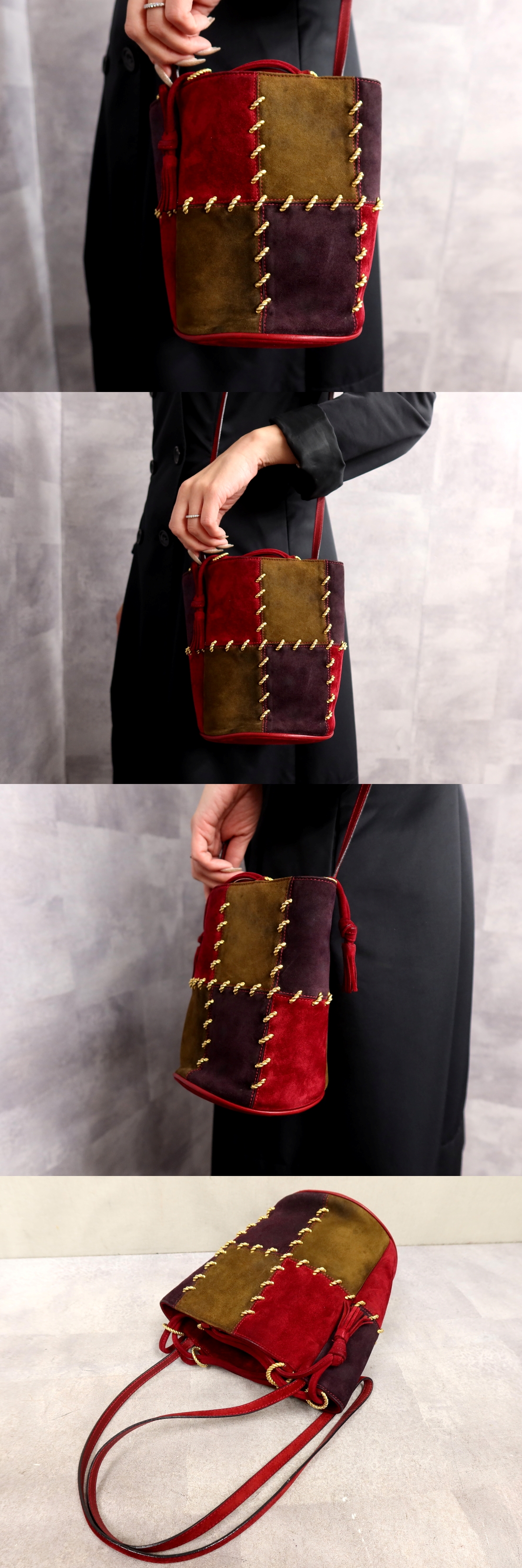 ●美品●フェラガモ●パッチワーク●タッセル●スエード カーフ レザー 本革●巾着 ショルダー バッグ●マルチカラー●かばん●Js63564 收藏