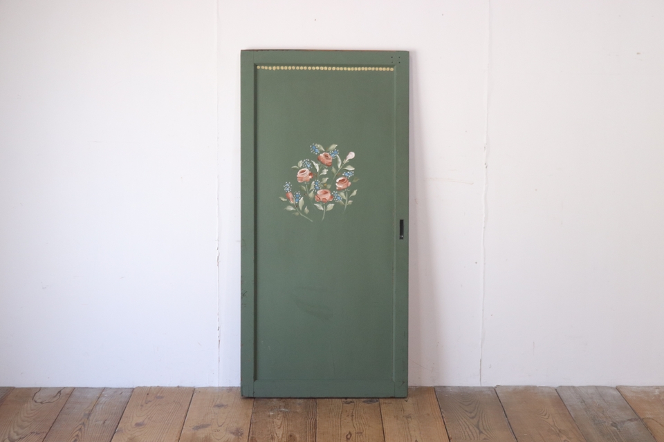 レトロ 建具 扉 引き戸 ドア ペイント 緑 グリーン 花柄 木製 ヴィンテージ 1/アンティーク英国 收藏
