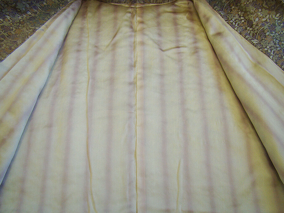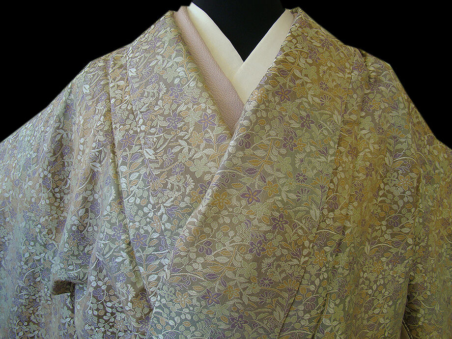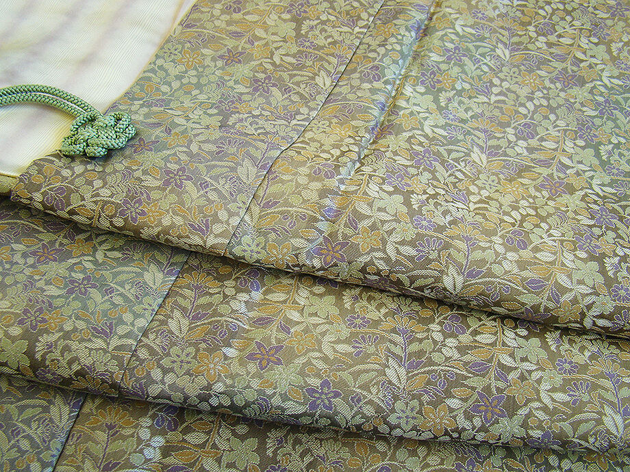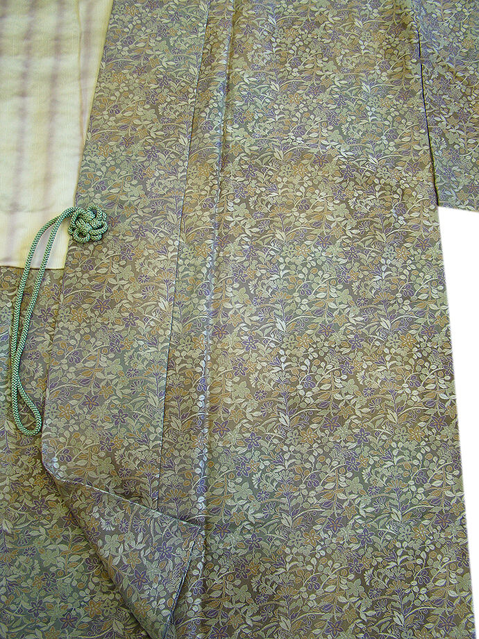 | 商品説明 | 大変にしなやかなしっかりとした重めの手触りの極上の着心地を誘う 贅沢にも重厚感際立つ重めの上質な能衣裳の生地の道中着。 利休鼠色地に柳茶、黄土、古代紫色等の花草柄の織柄。 お洒落な肩裏も正絹。 手縫い仕立。 |
