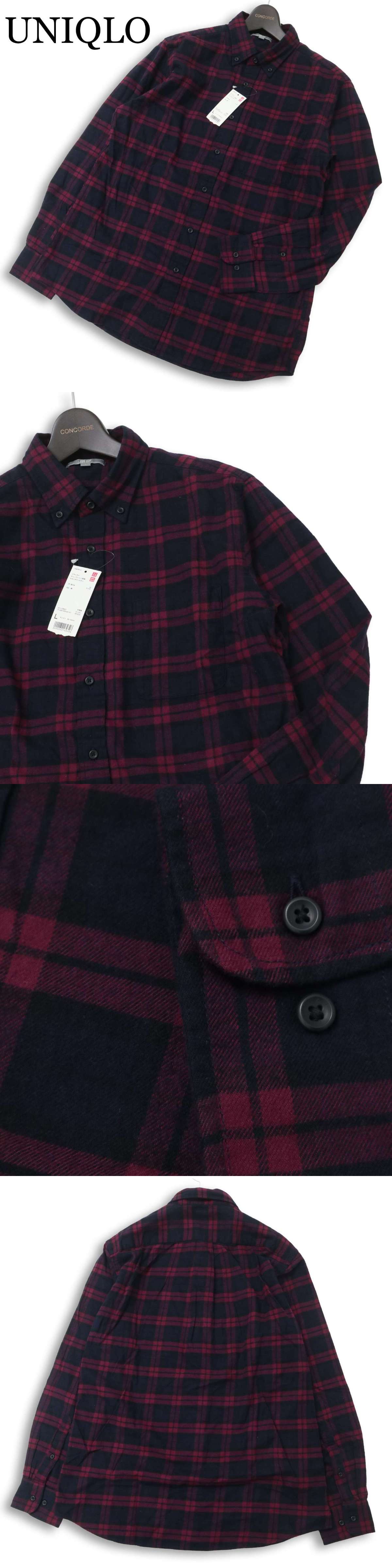 【新品 未使用】 UNIQLO ユニクロ 秋冬 長袖 ボタンダウン フランネル チェック シャツ Sz.L メンズ 收藏
