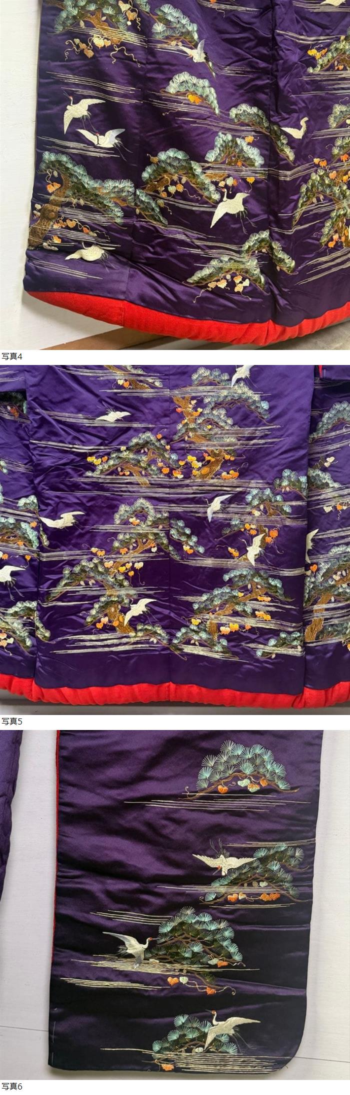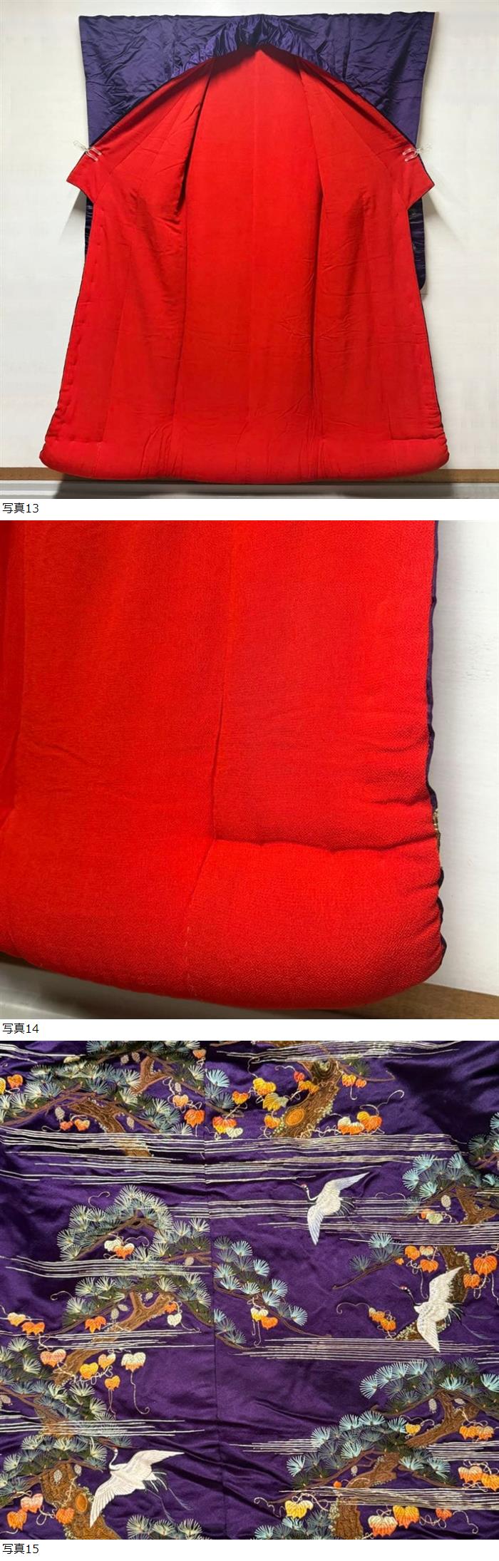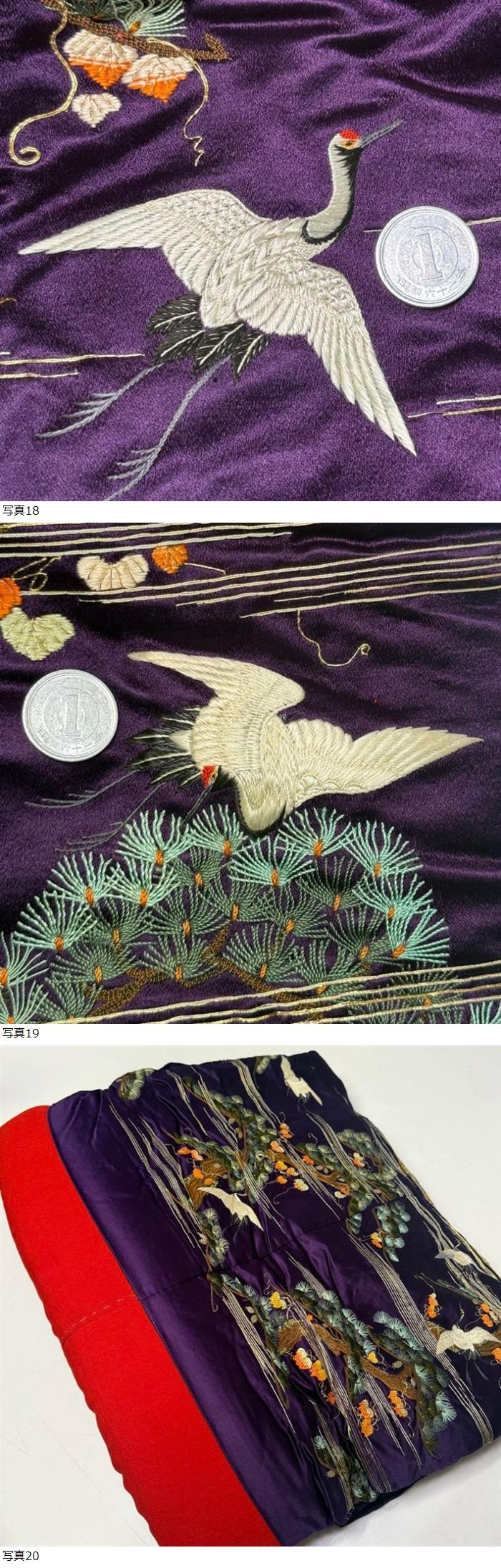 047/古布/アンティーク着物/正絹/赤縮緬/刺繍 | |||||||||||||||||||||||||||||||||||||||