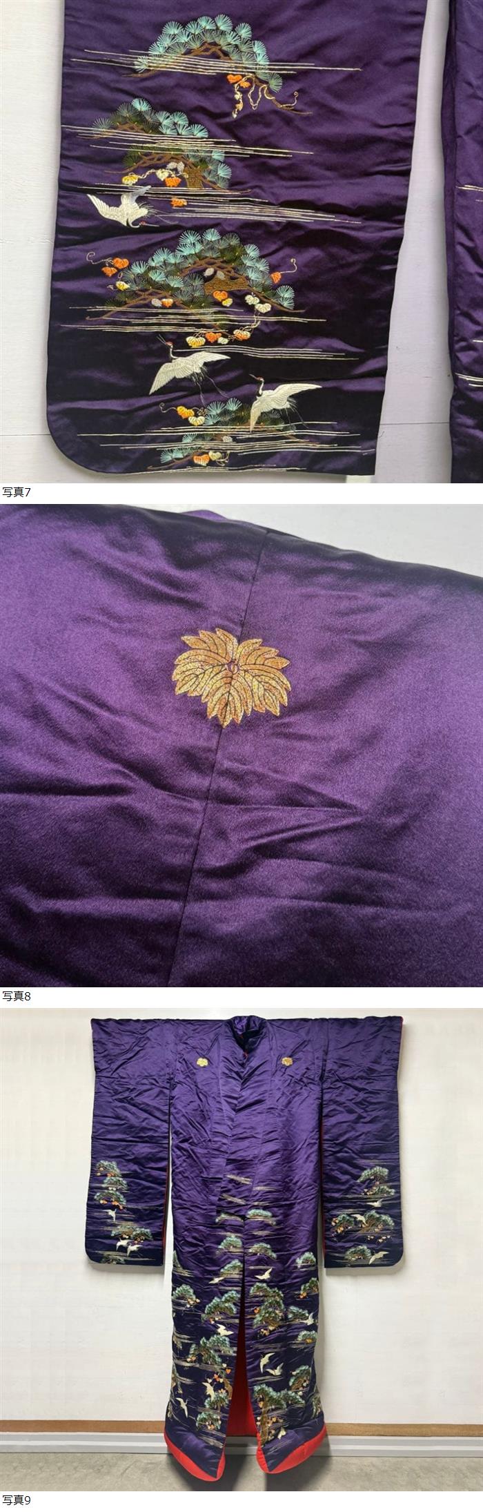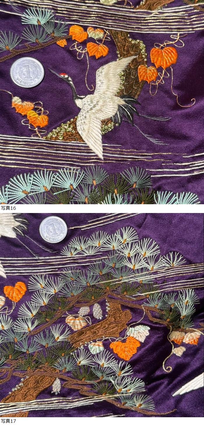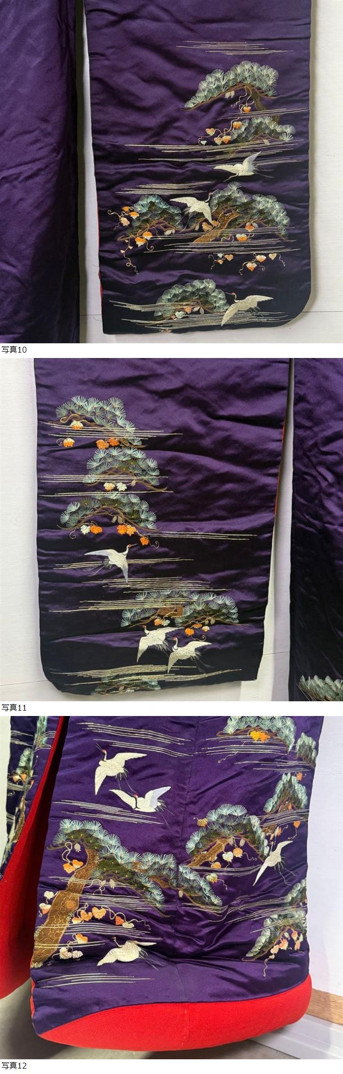 047/古布/アンティーク着物/正絹/赤縮緬/刺繍 | |||||||||||||||||||||||||||||||||||||||