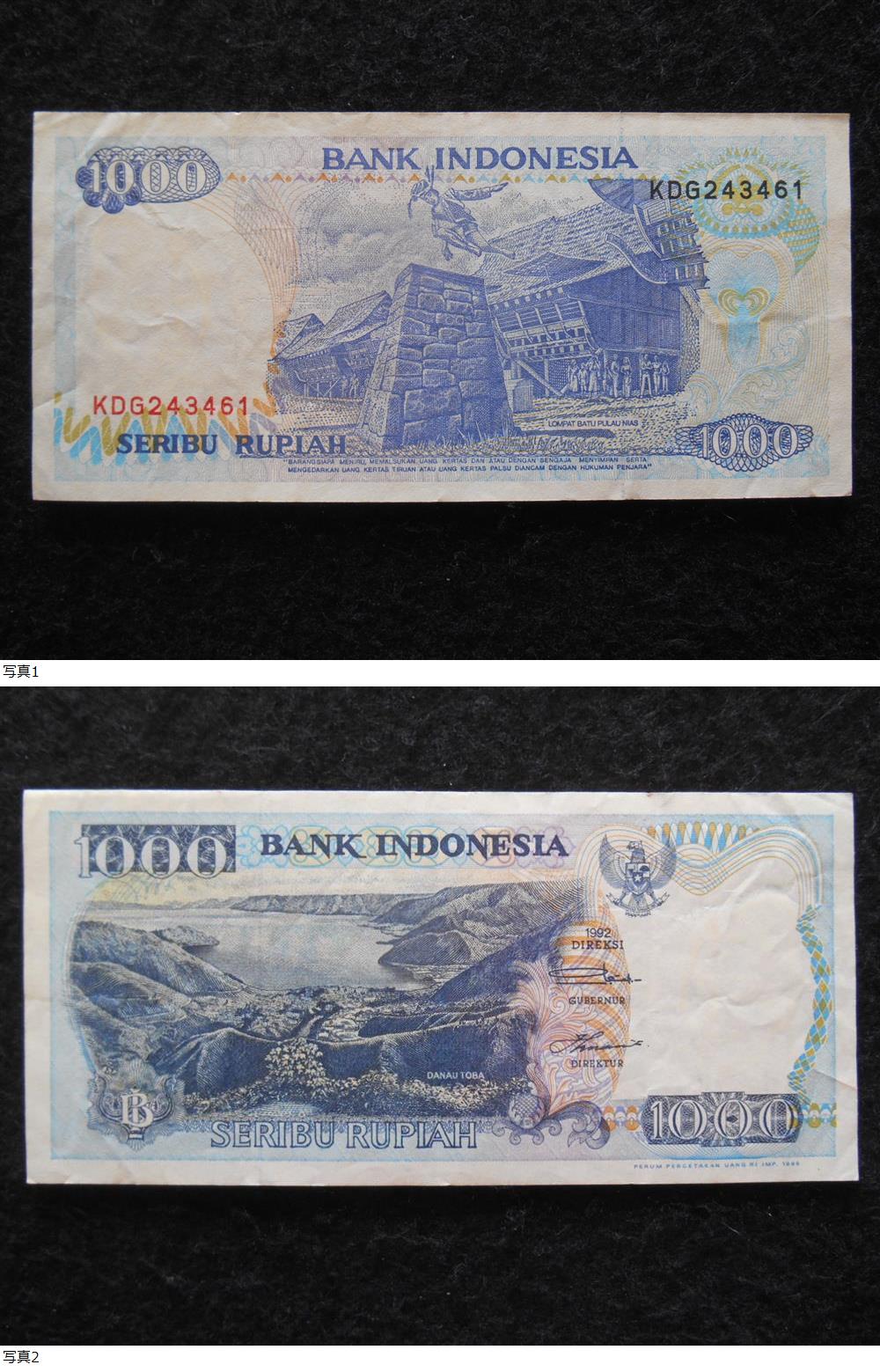 | 旧紙幣 インドネシア 1000ルピア 1992年 並品(上)B-0031 |