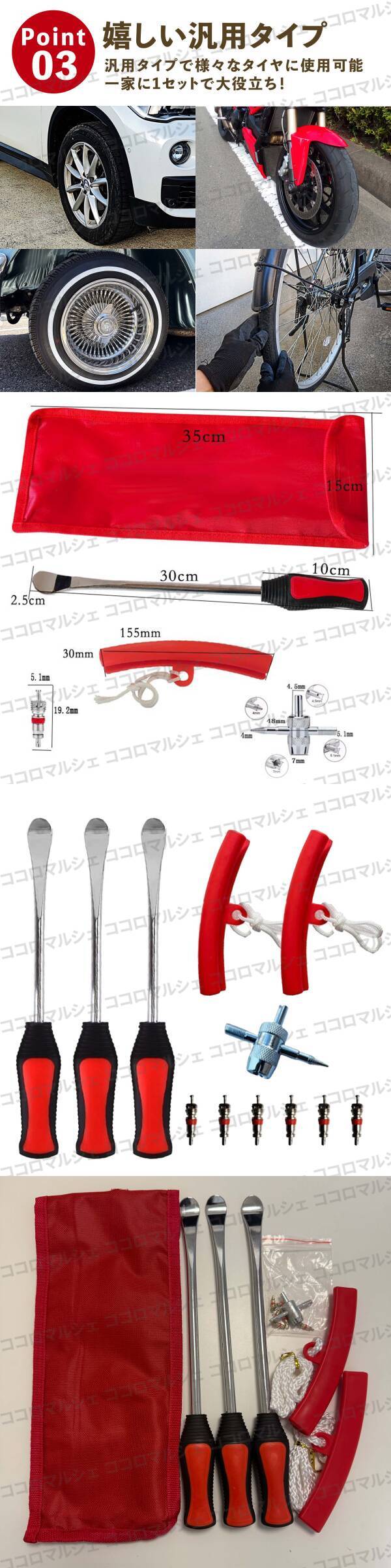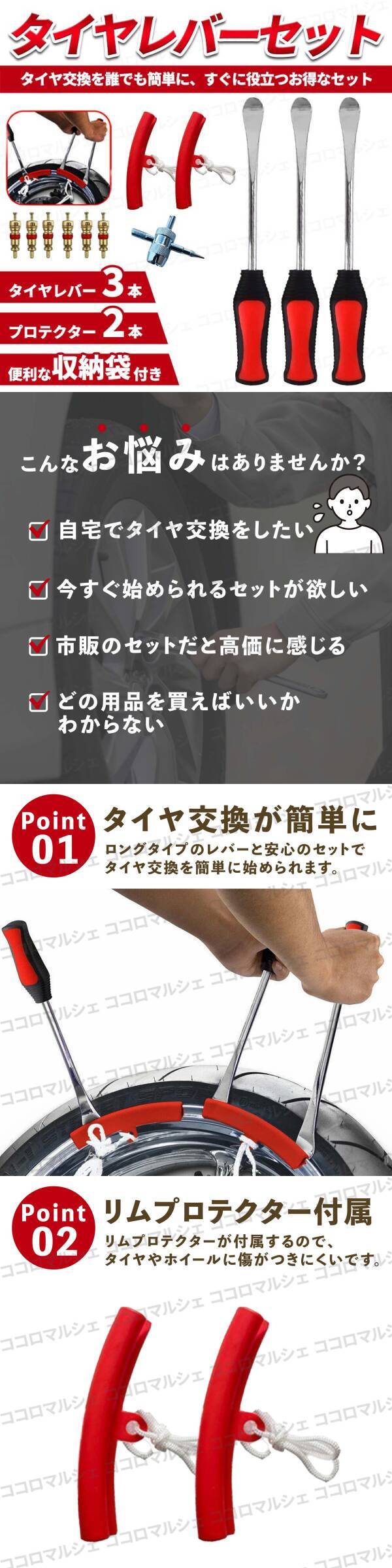 タイヤレバー 3本セット タイヤリムーバー リムプロテクター タイヤ交換 ホイール 自動車 工具 バイク リムバー タイヤチェンジャー 自転車 收藏