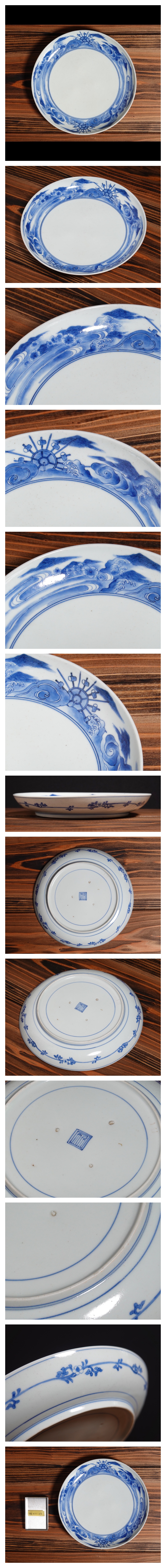 【聖陽堂】江戸時代 前期 17世紀末~18世紀初 古伊万里 藍柿右衛門 『 染付 水車 流水 桜文 中皿 』 七寸皿 【藍九谷 茶懐石】 r8 0111 03 收藏