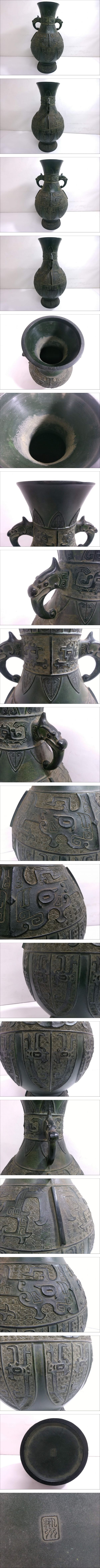 【うぶだし】飛州 造 金属製 古代文 獣耳花瓶/重量約9.5kg/高さ約54cm/耳付き/双耳/花器/飾り壷/古玩/金属工芸/床の間飾り/06KO012207-12 收藏