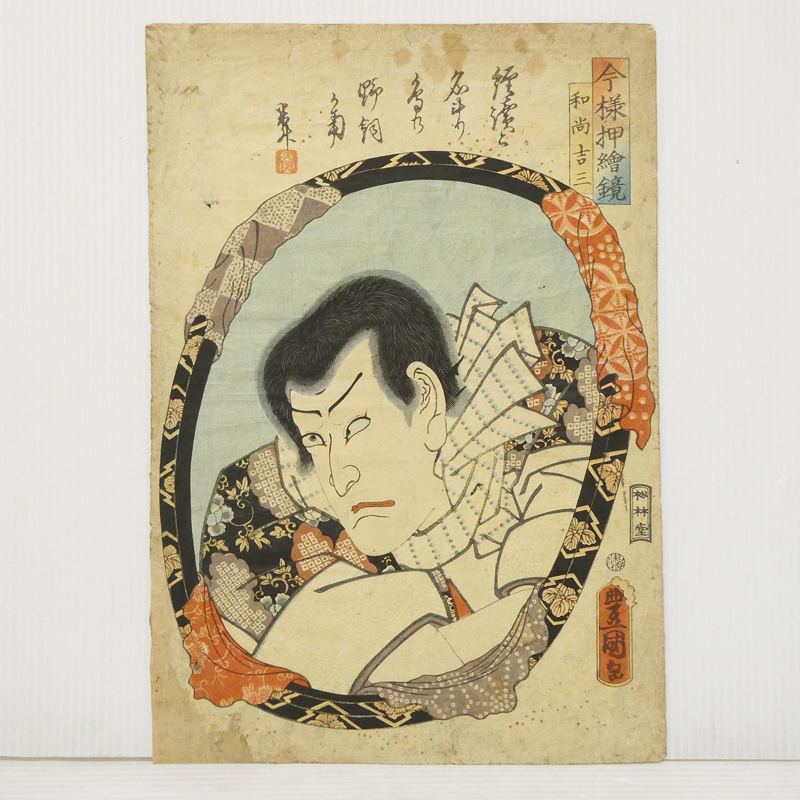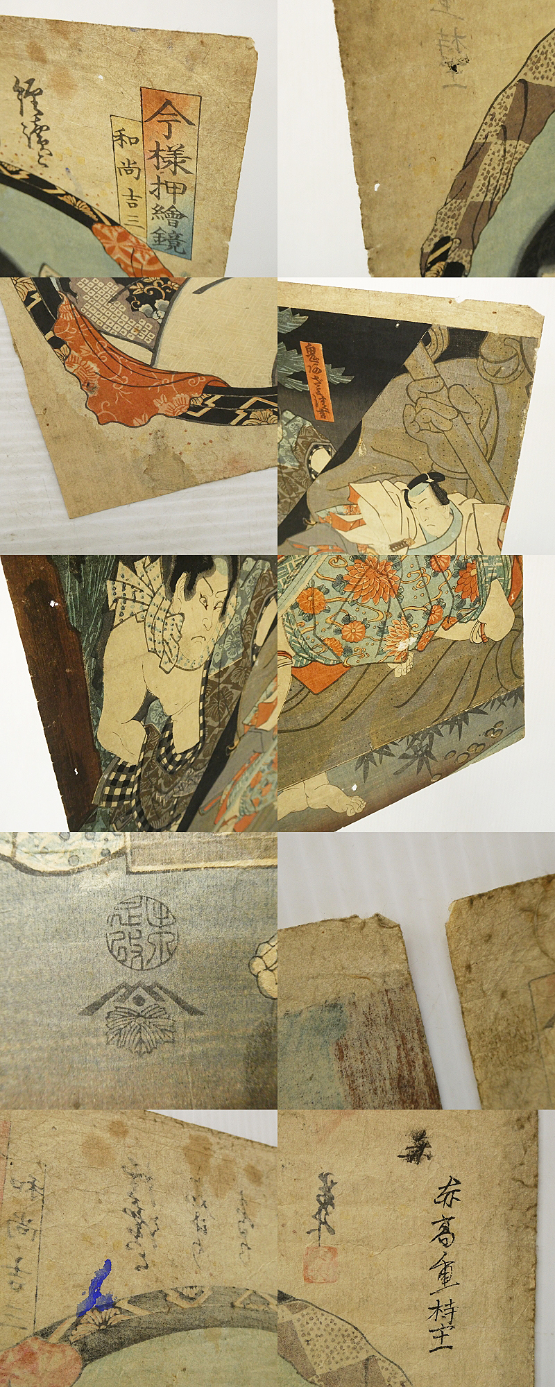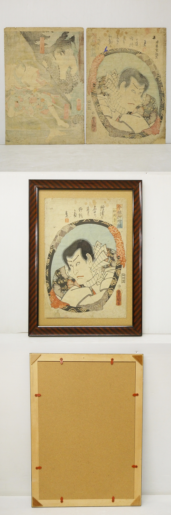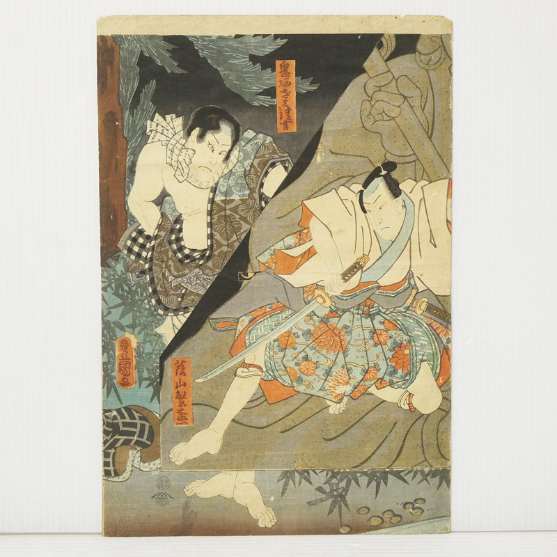 M126) 浮世絵 2枚セット! 歌川国貞 三代豊国 今様押絵鏡 和尚吉三 四世市川小団次 小袖曽我薊色縫 大判錦絵 役者絵 木版画 [難有り] ♯ 收藏