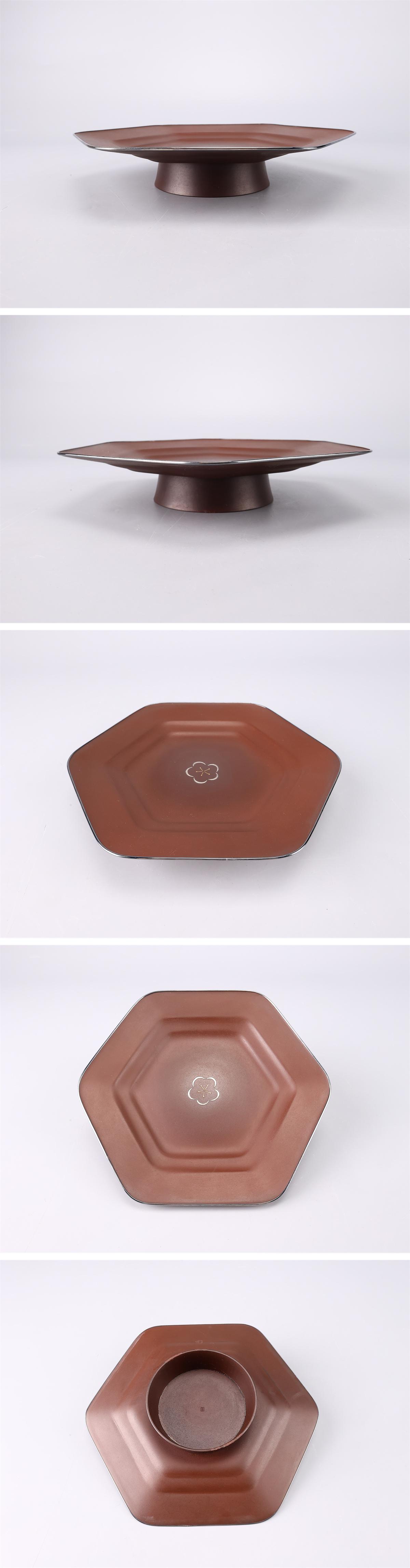 【吉】DB062 金工家 【小林尚珉】造 鉄打出 純銀象嵌 純銀縁 清香盆 径22㎝ 重349g/共箱付 美品I! 收藏