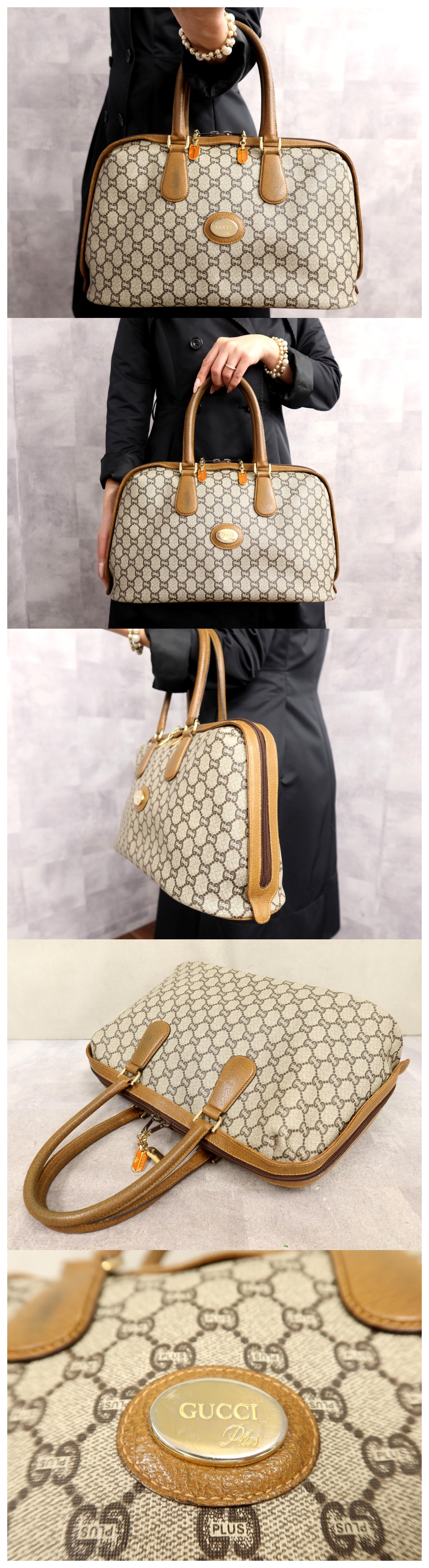 ●超美品●オールド グッチ●グッチプラス●PVC カーフ レザー●ミニ ボストン ハンド バッグ●ブラウン ベージュ●ヴィンテージ●Js65276 收藏
