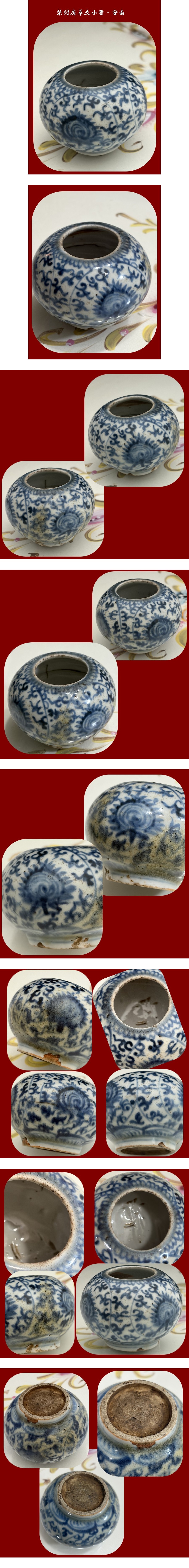 ★安南・染付唐草文小壺・茶壺・茶入れ・時代物(ベトナム・17世紀頃)