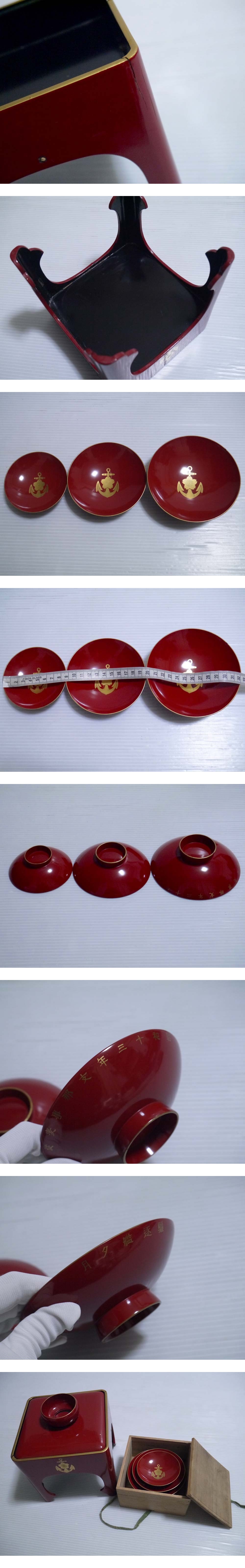 稀少!戦前 当時物「昭和13年 支那事変従軍記念 駆逐艦夕月」三つ盃 (商品説明内に詳細画像あり)三々九度 盃台 大日本帝国 旧日本海軍 收藏