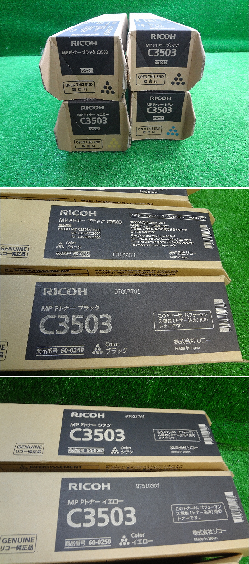 Kさみ2014 未使用■RICOH リコー■トナー C3503■60-0249 ブラック■60-0250 イエロー■60-0252 シアン■4本セット まとめ売り 收藏