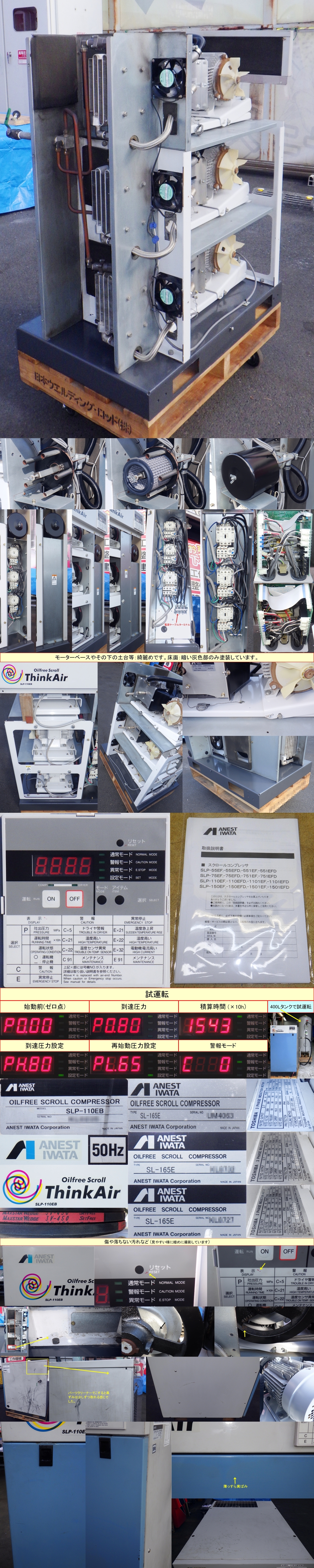 [希少15馬力] パッケージコンプレッサー/エアーコンプレッサー/コンプレッサー [人気のオイルフリー] アネスト岩田 SLP-110EB 50Hz動作良好 收藏