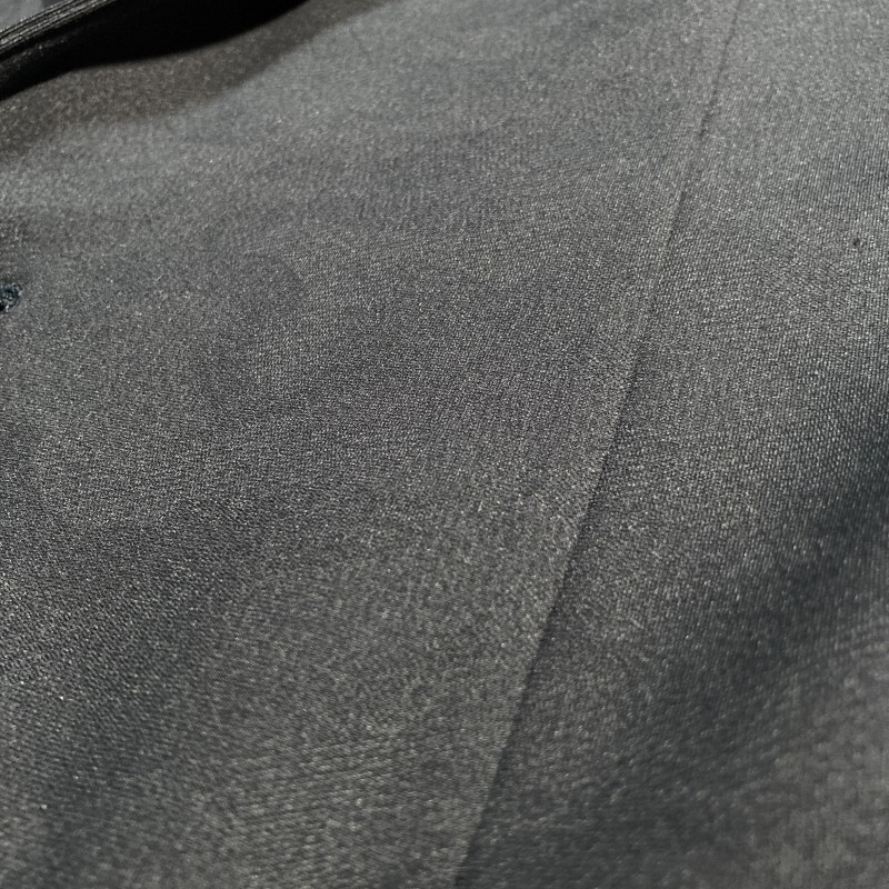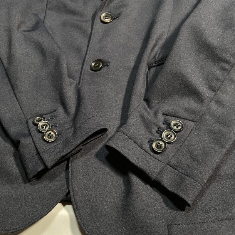 フロントは2つボタンで、雨蓋付きポケット、そして、袖は本切羽仕上げ。