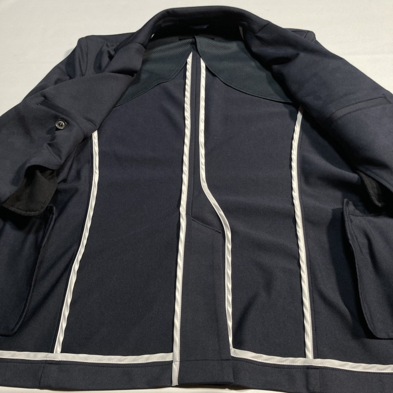 胸ポケットには、ホワイトのチーフを裏地として忍ばせており、ワンアクションで、印象を変える事が可能です。