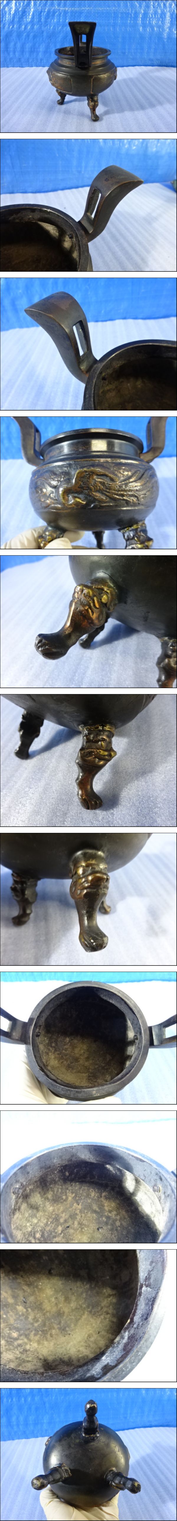 X-86/三具足みつぐそく 真鍮製? 香炉 香合? 唐獅子つまみ 鼎かなえ 仏具? ディヒューザー 芳香 金属工芸品 古民具? アロマ? 住宅設備 收藏